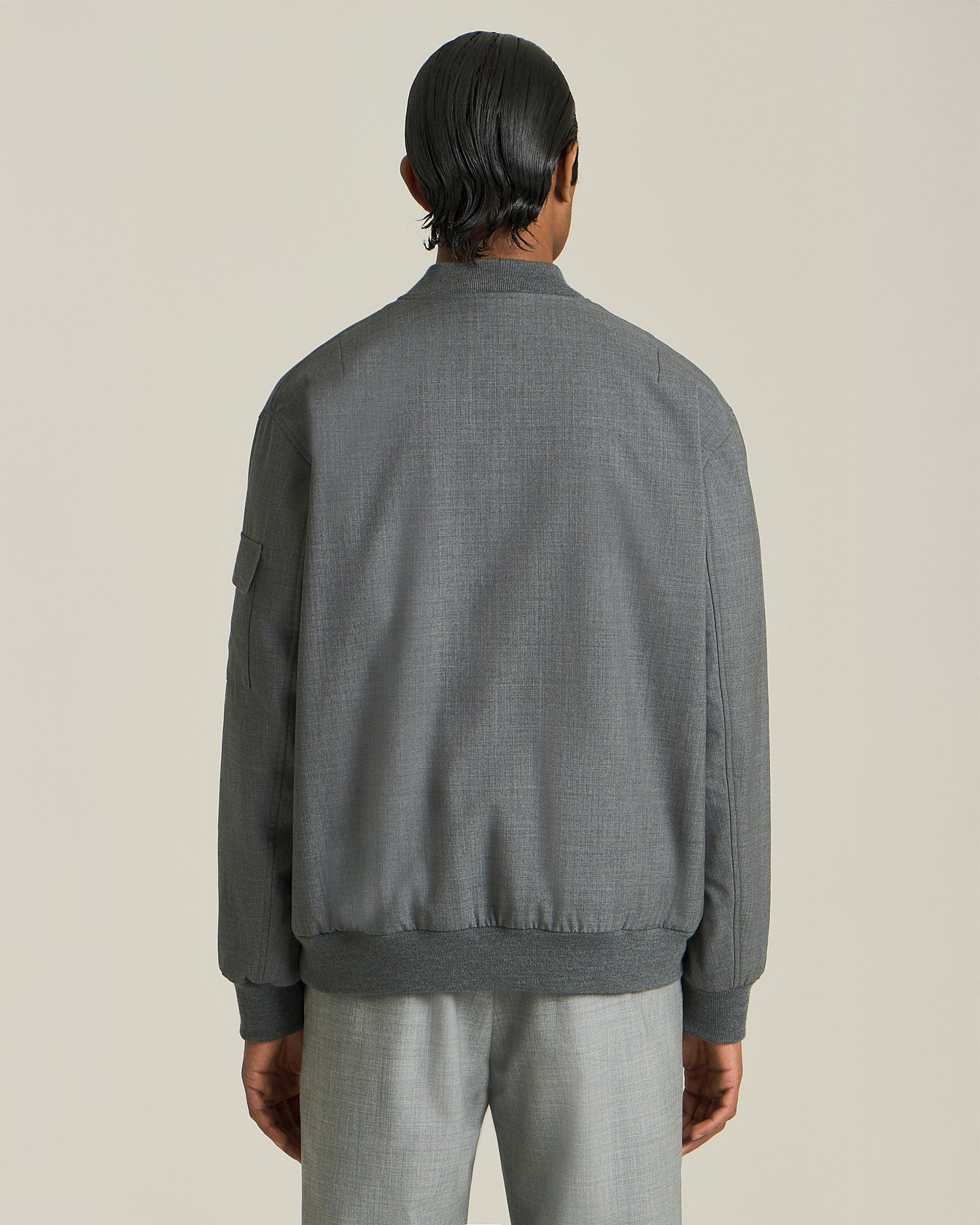 Crafted from an exclusive quality of the finest wool, this KNT bomber jacket blends sartorial sophistication with streetwear influences, creating the perfect balance of comfort and modern elegance. The double-slider front zip adds functionality, while the slanted button pockets and zip-up arm pocket offer practical, iconic details without compromising on aesthetics. The ribbed knit collar and cuffs add a touch of sophistication, making this bomber jacket the perfect blend of travelwear and urbanwear.