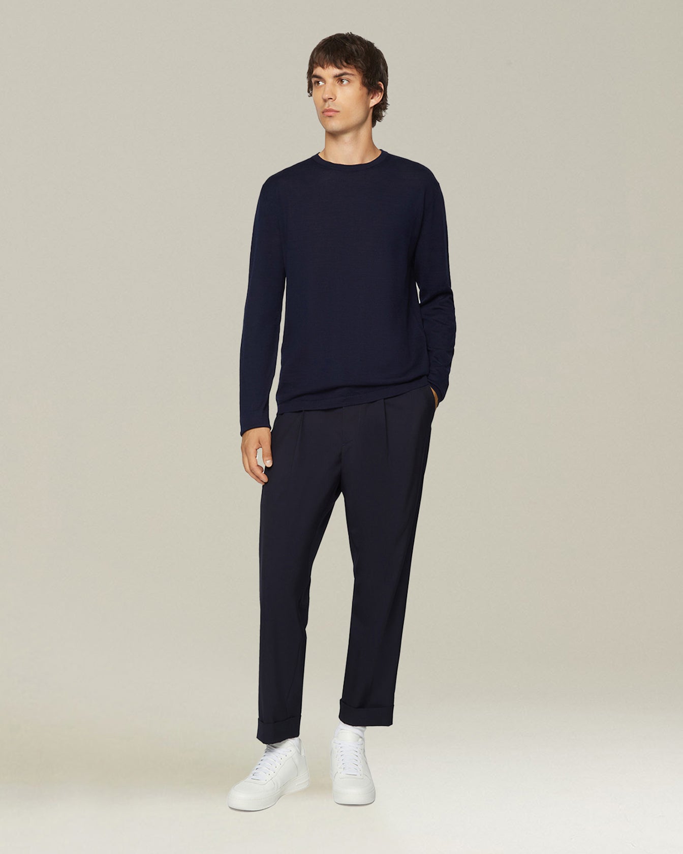 WOOL AND SILK BLEND CREW NECK JUMPER