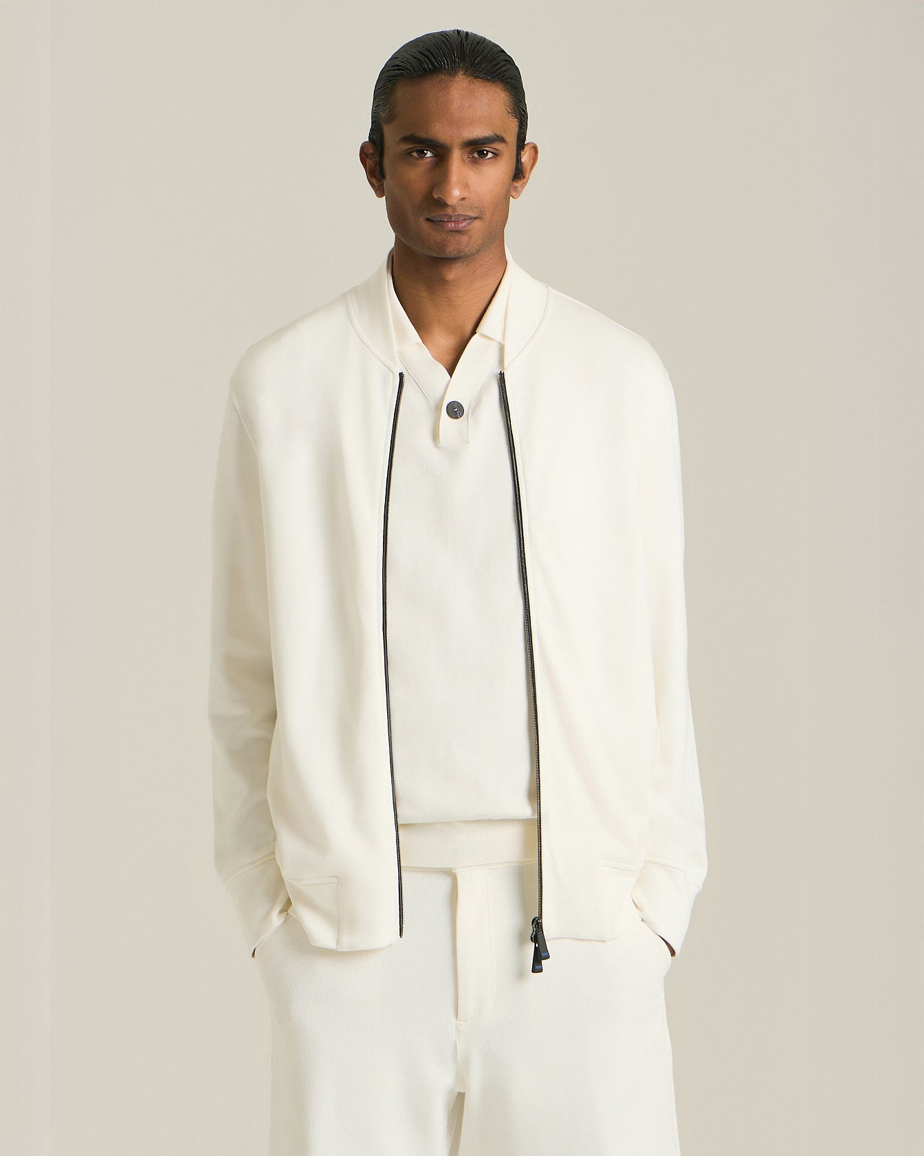 Crafted from innovative stretch viscose, this KNT sweatshirt is a versatile garment designed to provide an exceptional fit and unmatched comfort, thanks to its lightweight construction and ability to adapt to the body’s movements. Featuring two diagonal pockets, the sweatshirt adds a touch of functionality while contributing to a modern, dynamic aesthetic. With its active tailoring approach, this sweatshirt reflects an urban, contemporary spirit, where craftsmanship seamlessly merges with high-performance, sports-inspired materials.