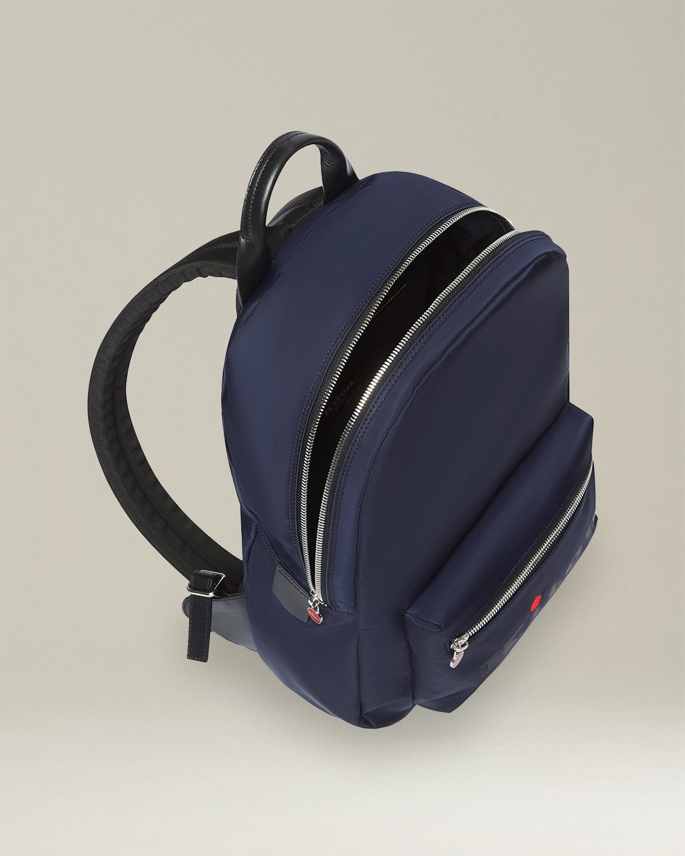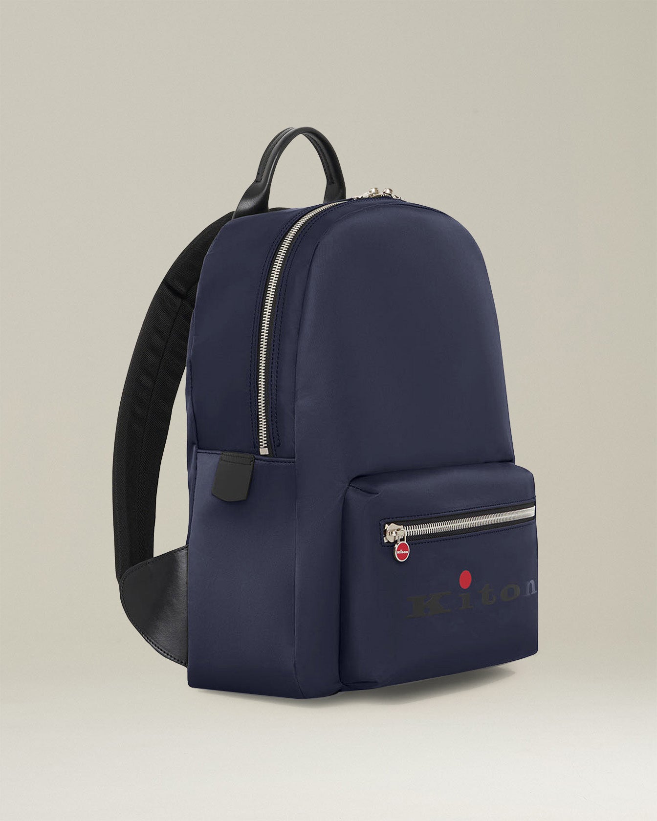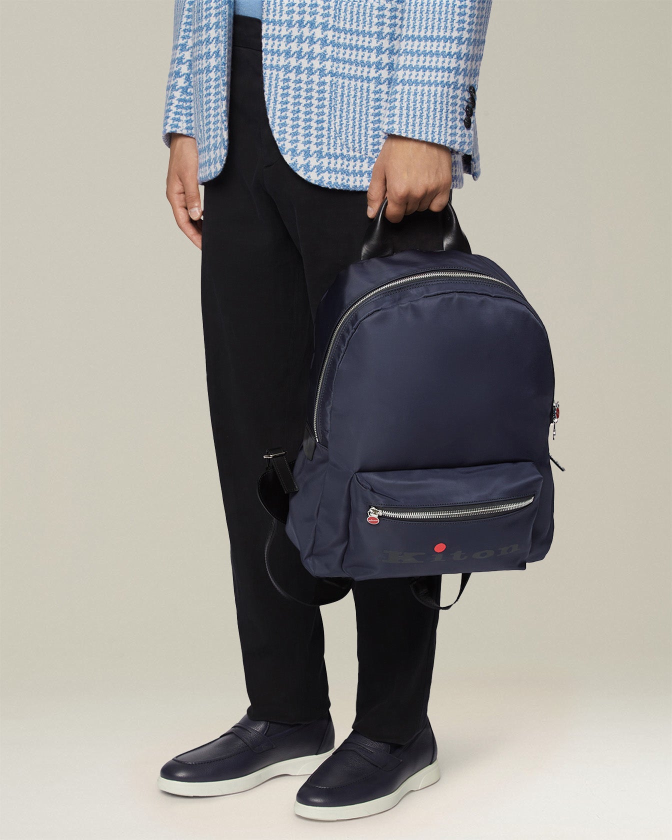 Perfect for city life, this sporty backpack is made from high quality nylon with fine leather detailing. The double zip fastening, large front pocket and adjustable logo shoulder straps offer an essential, minimalist design ideal for the dynamic, cosmopolitan man. Thanks to the meticulous craftsmanship of Kiton’s artisans, this backpack is exceptionally light and flexible: it can be easily folded and stowed in a suitcase, minimising its volume. Dimensions: 33x37x12 cm.