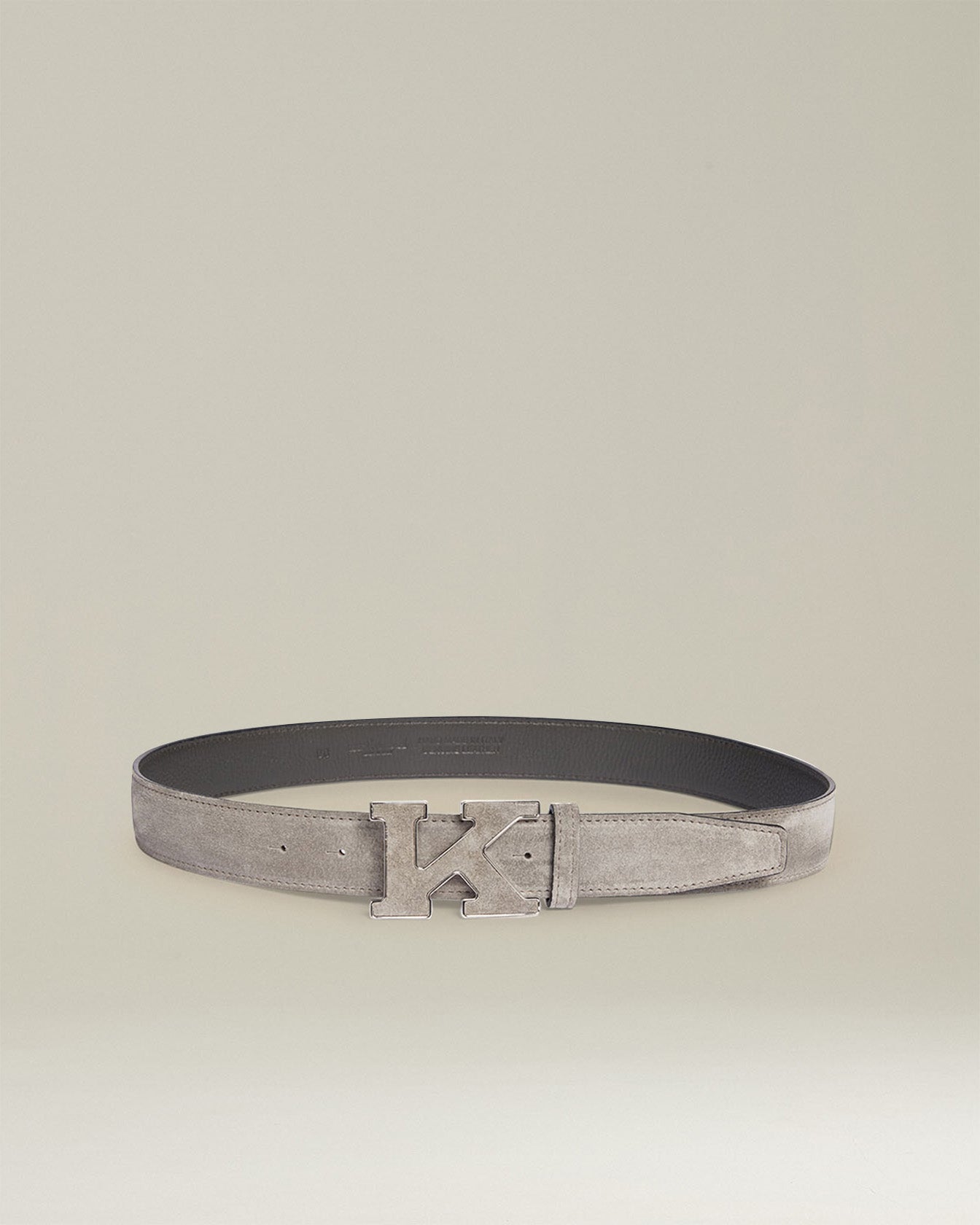 This lead grey belt comes in French calfskin suede with the iconic buckle covered in the same leather and palladium trims. This belt is completely seamless. Width: 35 mm. Adjustable length with screw fastening on the back. All Kiton pieces are made from meticulously selected hides and assembled by expert craftsmen at our Naples workshop. The superior quality hides are also processed by hand using artisan washes and dyes.