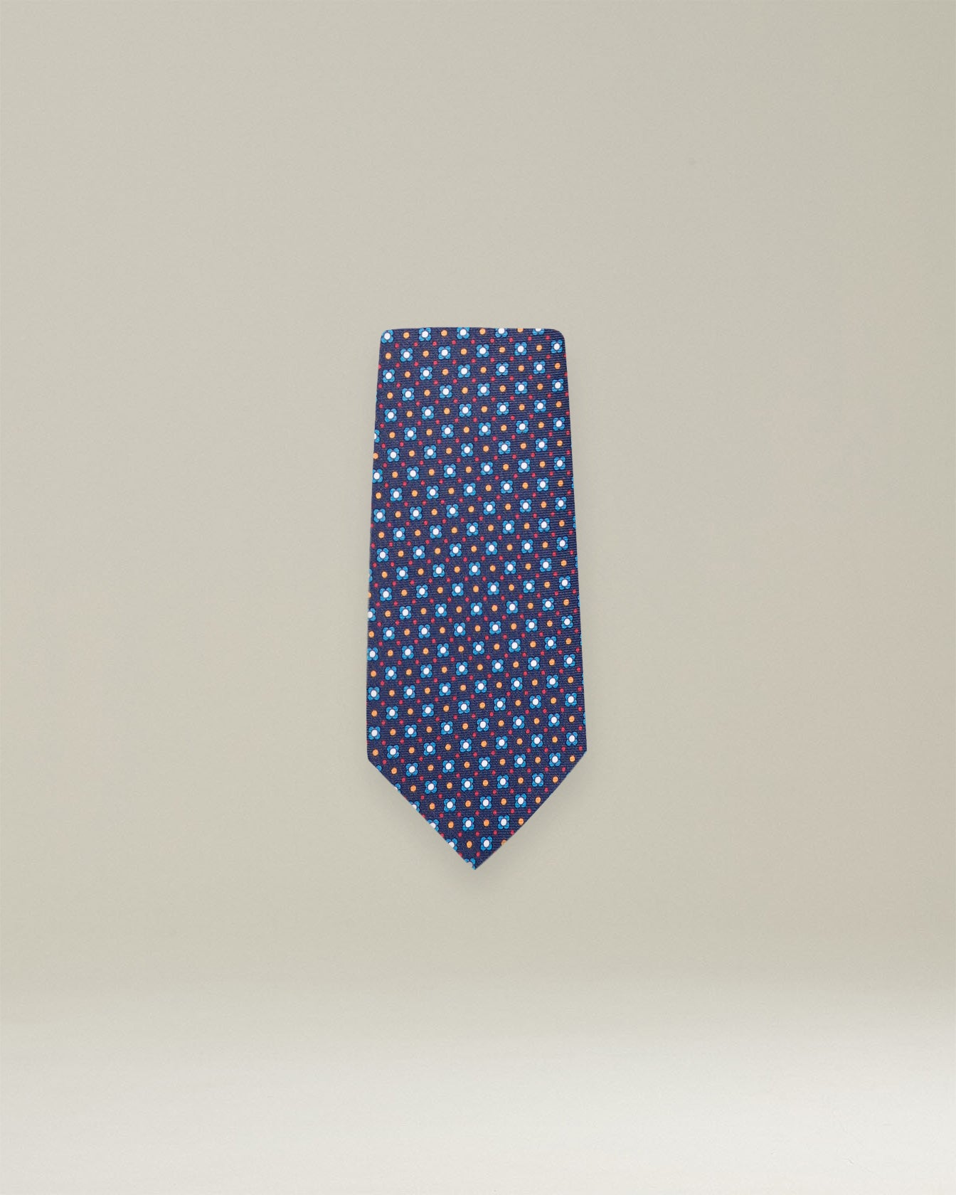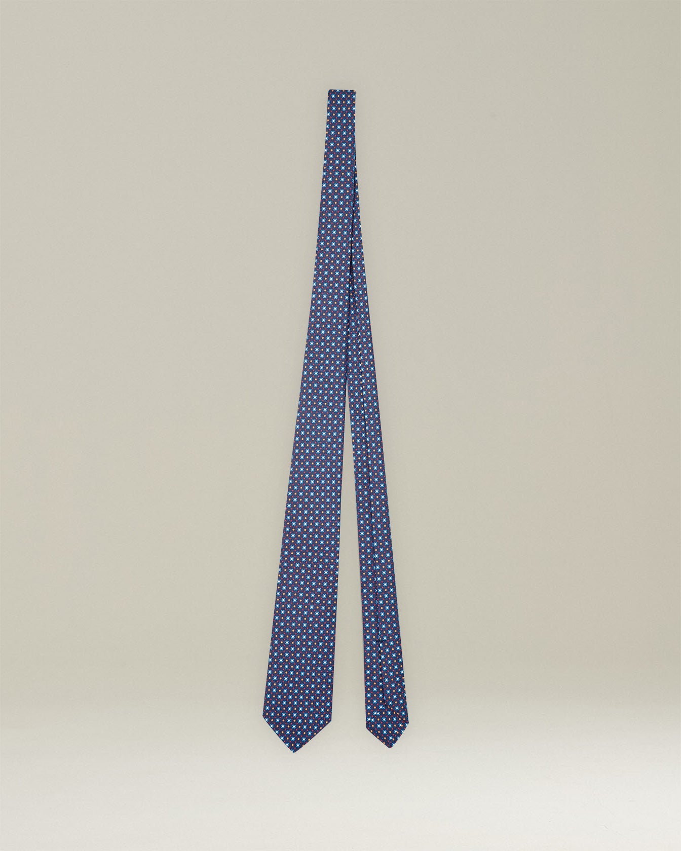 Pure silk tie with sophisticated geometric pattern, worked entirely by hand. Length: 1.48 m - Width: 8.5 cm.