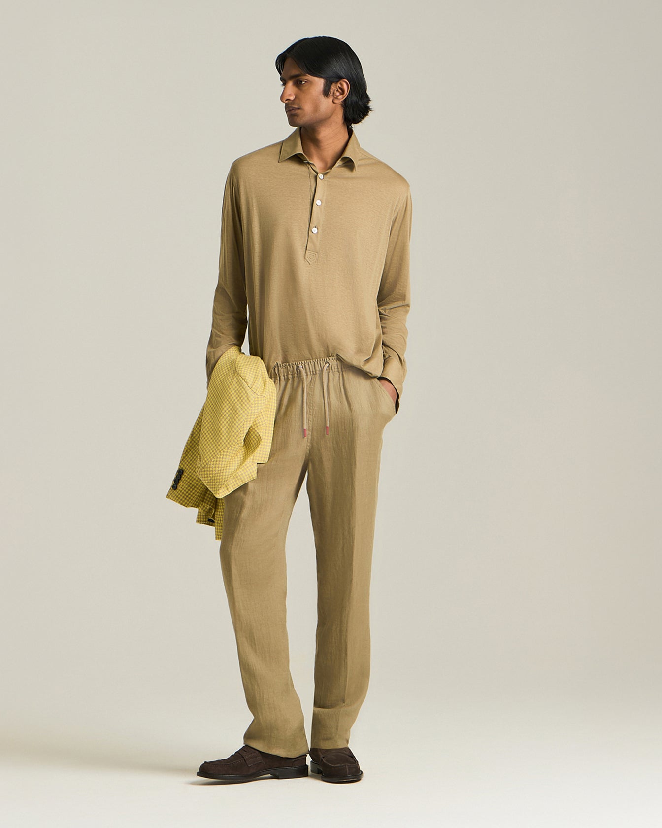 The softness and fluidity of the lyocell and cotton fibres enhance the casual style of the long-sleeved polo shirt, which has become an essential part of the modern man’s wardrobe. Its versatility makes it suitable for countless occasions, from smart casual to formal with timeless elegance.
