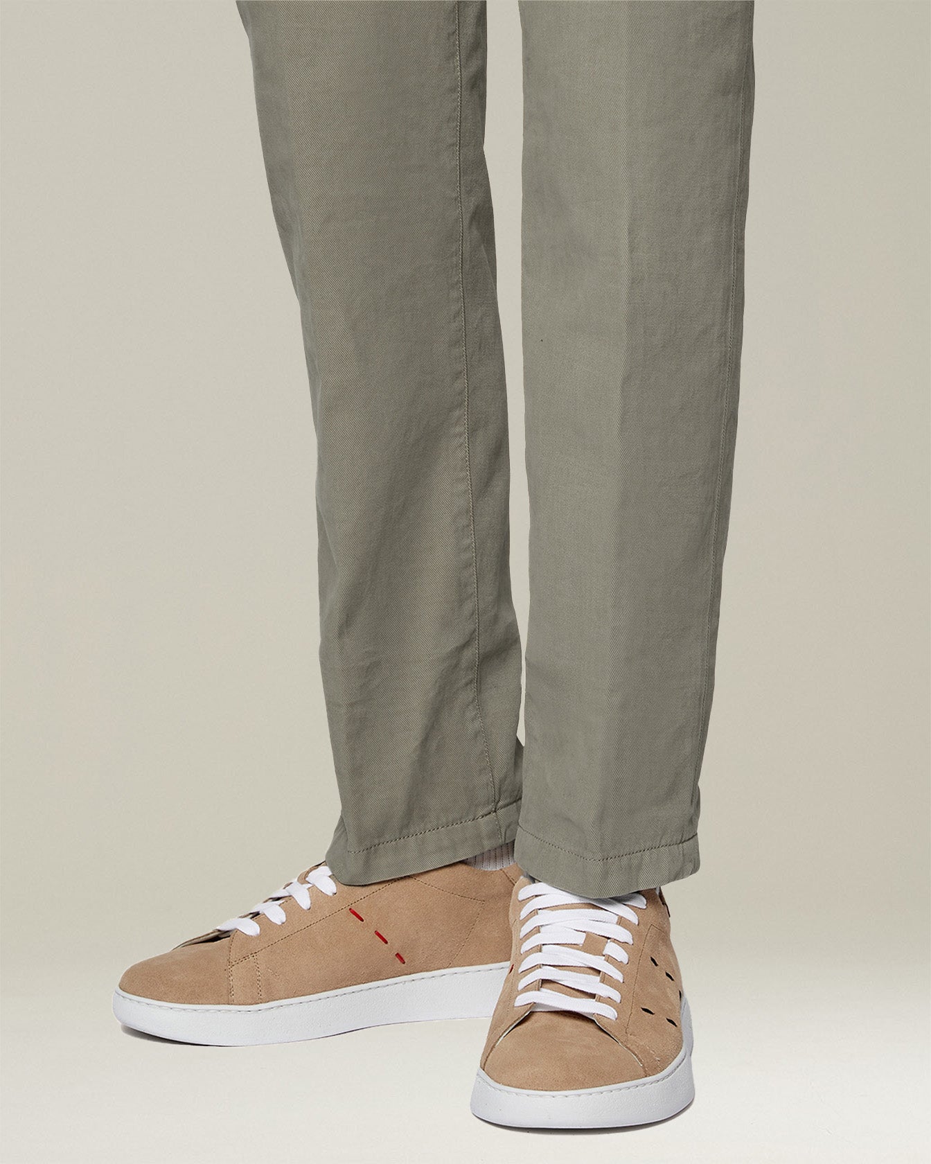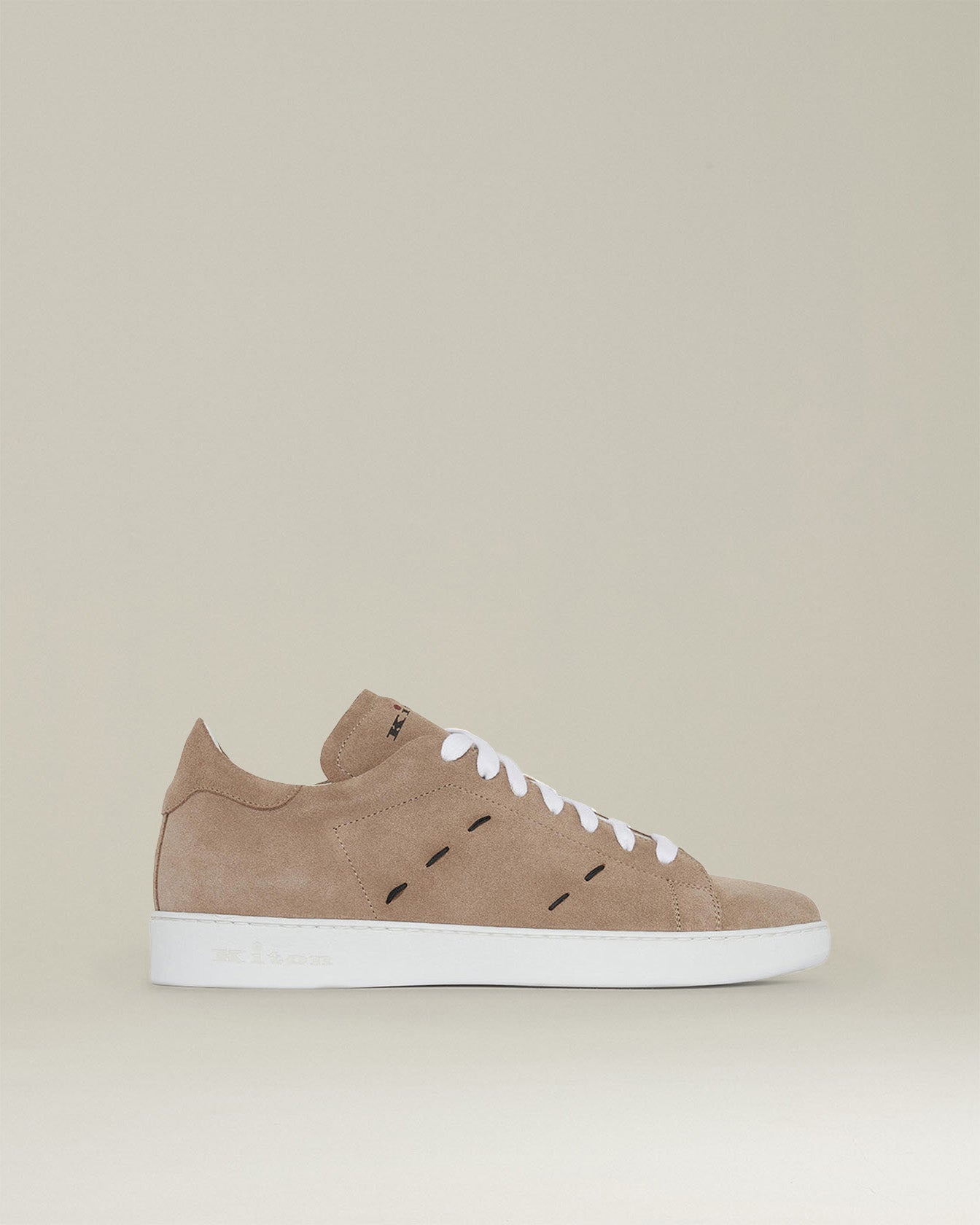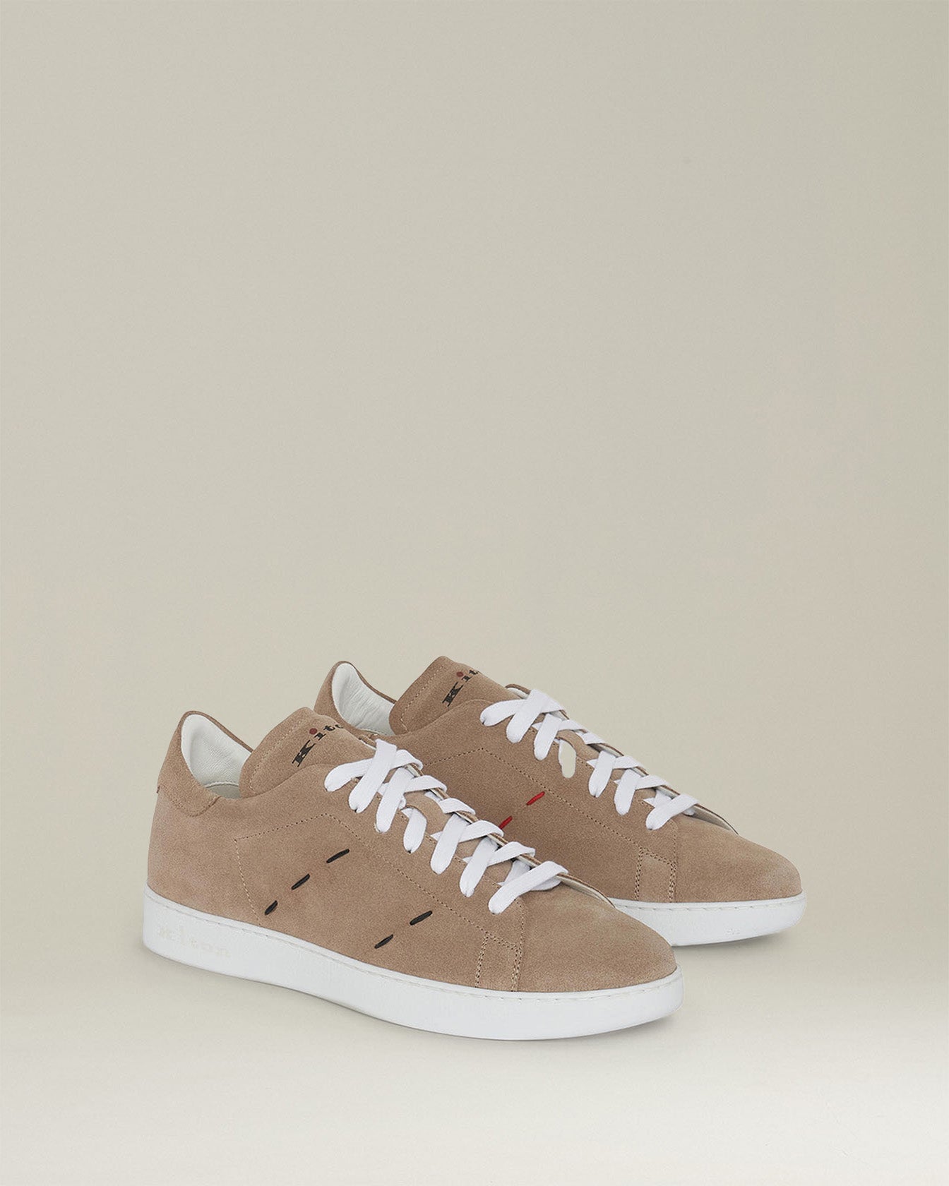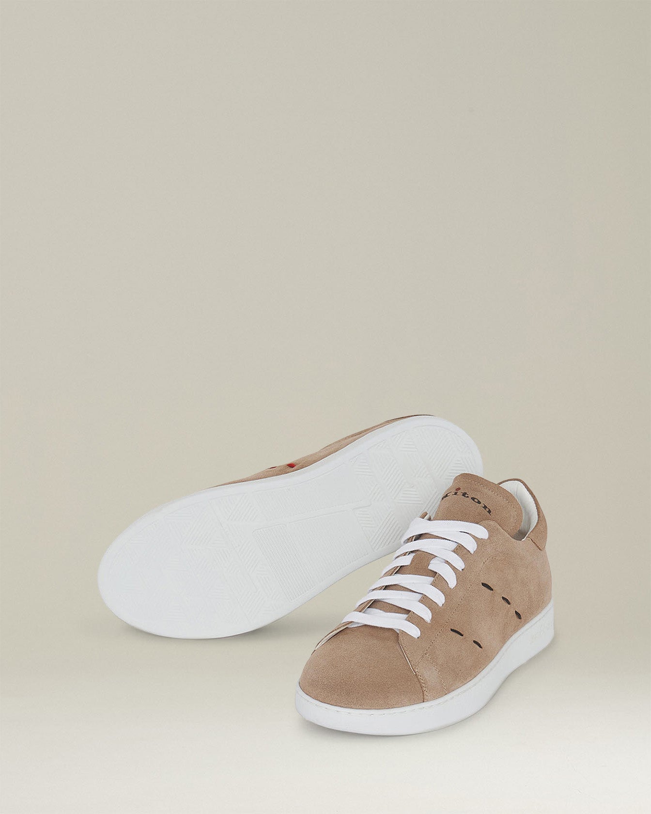 Kiton stands out for its commitment to innovating both aesthetically and technically, while at the same time respecting tradition. The sneakers we offer embody this philosophy, focusing on absolute quality. Decorated with contrasting maxi stitching, a tribute to the precious heritage of craftsmanship, this model combines essential design with fine materials and workmanship. The sophisticated texture of suede calfskin gives these sneakers a timeless allure. The sole is made from EVA, an innovative, flexible, hypoallergenic, non-toxic and anti-trauma material that guarantees exceptional flexibility and comfort, making these shoes ideal for all seasons. The white calfskin lining preserves lightness without compromising quality. Perfect for adding a touch of sophisticated sportiness to your casual outfits.