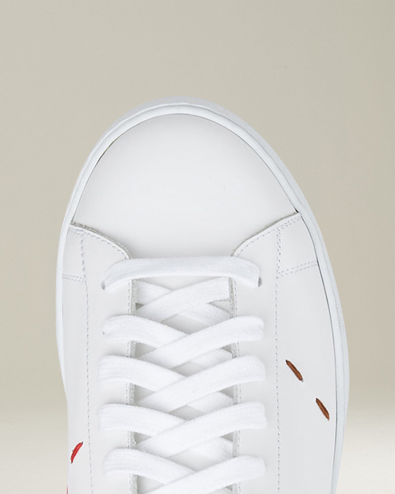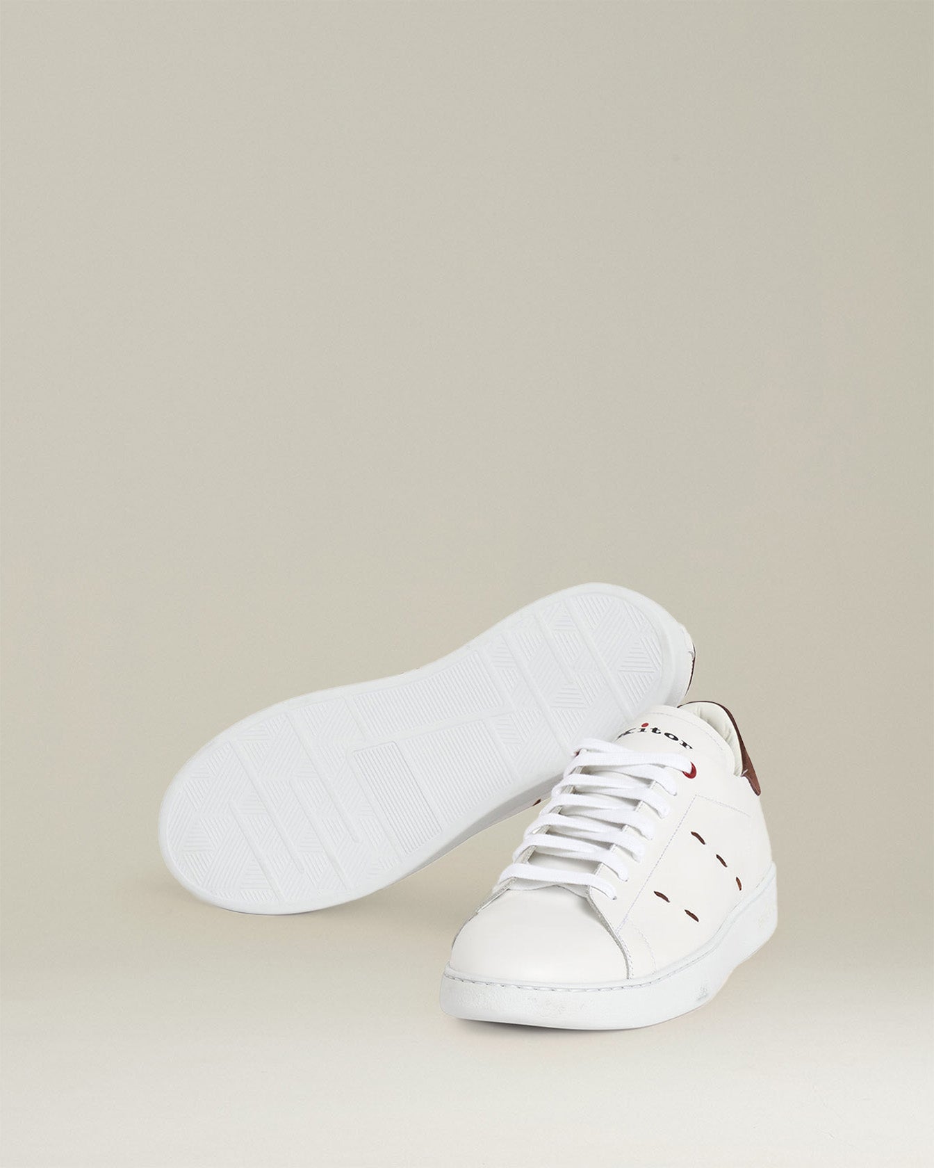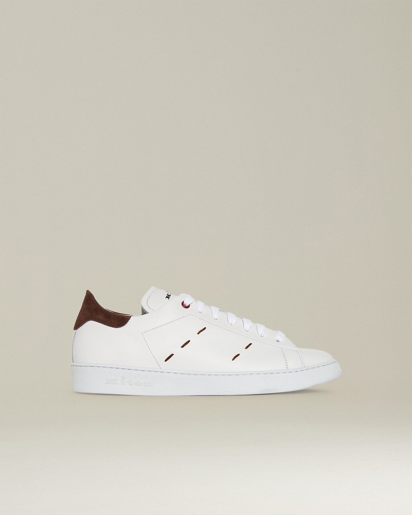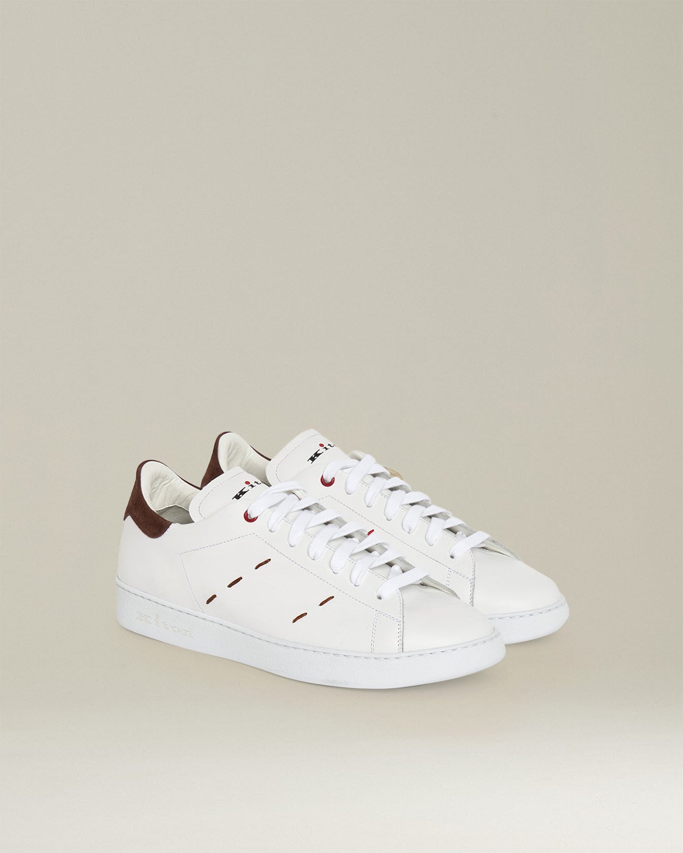 White calfskin sneakers with a cup sole, embellished by mocha and red maxi stitching at the sides and a mocha suede heel tab. The sole in EVA, an innovative, flexible, hypoallergenic, non-toxic and shock-absorbing material, makes these sneakers exceptionally flexible, comfortable, and well-suited to year-round use. White calfskin lining. All Kiton items are made from carefully-selected leather that has been assembled by expert craftsmen in our atelier in Naples. The high-quality hides have beenworked manually, using artisanal washes and dying methods. Every irregularity, colour clouding, veining or creases distinguishes Kiton products, making them unique. The Kiton mission is to innovate in terms of aesthetics and technique, while always keeping tradition in mind. For this item, we’ve interpreted sneakers according to the philosophy of the fashion house, placing quality first and foremost. The benefit of hand-made products lies in their added comfort. Dry clean to keep them looking their best. To maintain the beauty and characteristics of our products, we recommend following a few simple rules: avoid exposing the item to light, heat and humidity for extended periods of time; avoid contact with fats and oils, products for make-up, perfume and solvents; keep out of contact with water when possible.