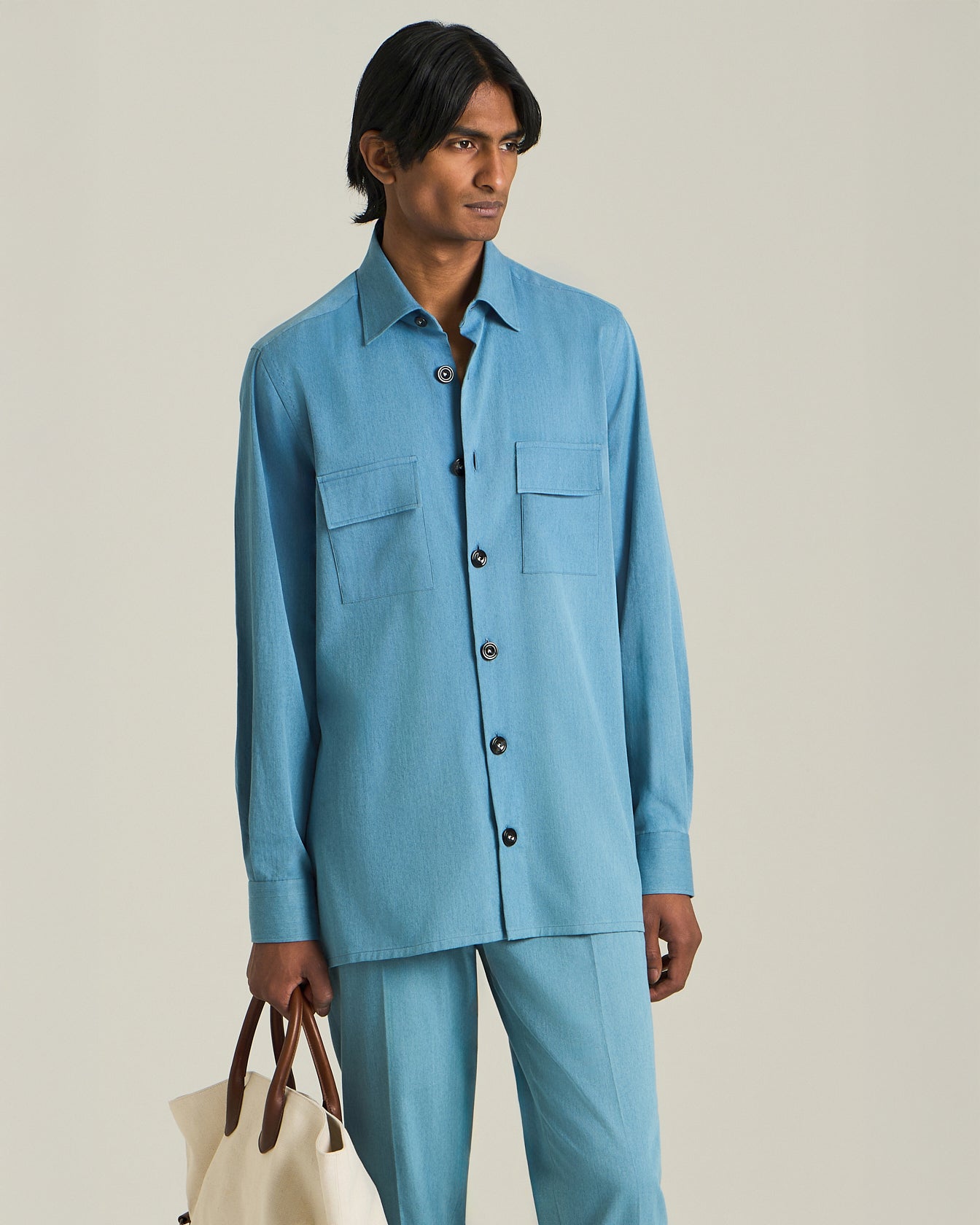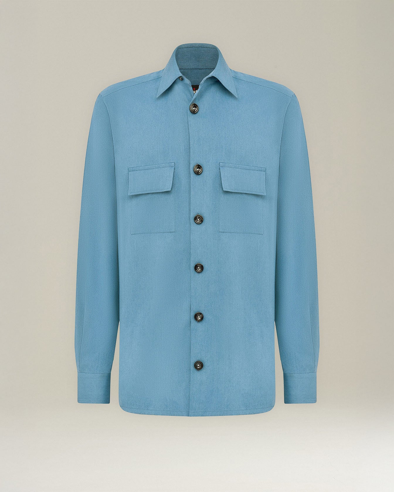 Crafted from an exclusive mineral washed denim yarn and finished with natural horn buttons, this overshirt is reinterpreted with Kiton’s traditional sartorial mastery. Practical and functional, this garment can be worn over a T-shirt or under a jacket or coat, making it easy to adapt to different occasions. With a clear vocation for comfort, it fits in perfectly with the collection’s relaxed trend, making it ideal for leisure and for creating casual yet sophisticated looks.