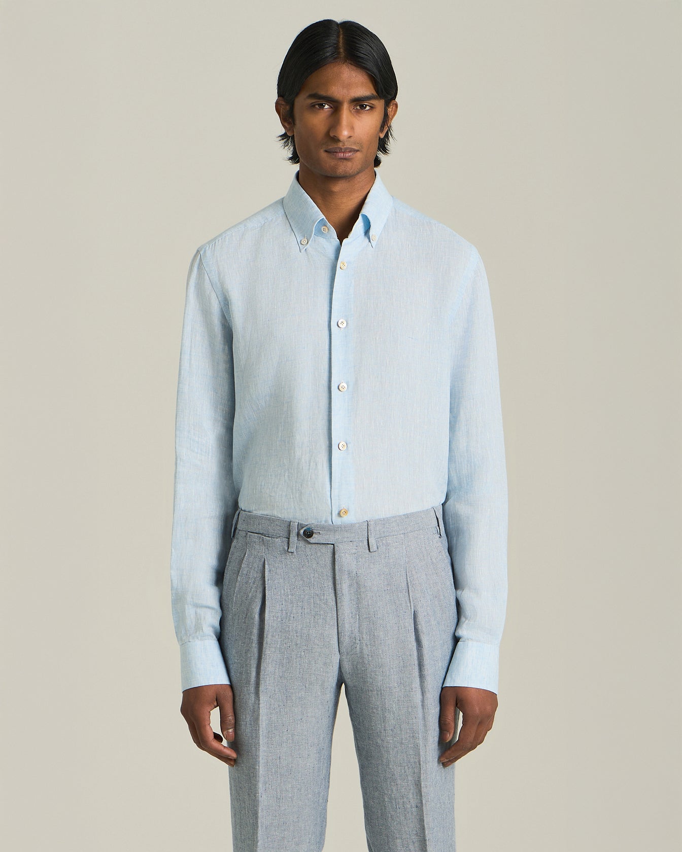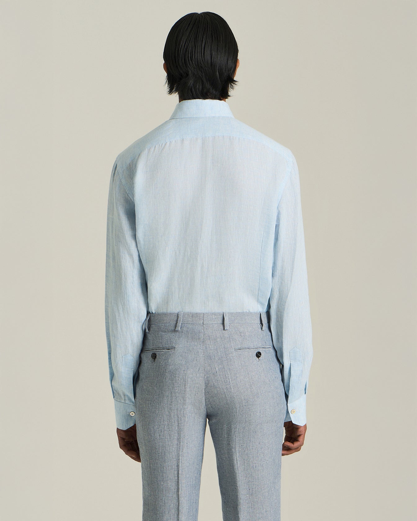 Carefully handcrafted in 22 steps in our Naples atelier, this linen shirt embodies the finest savoir-faire: each cut is made with precision to ensure design uniformity, while the stitching, handmade with exceptional finesse, offers remarkable softness, naturally following the body’s movements and enhancing the silhouette. The sophistication of the garment is further enhanced by the hand-carved buttons made from the finest Sydney ‘Pinctada Maxima’ mother of pearl, cultivated off the coast of Australia, adding an exclusive, refined touch.
