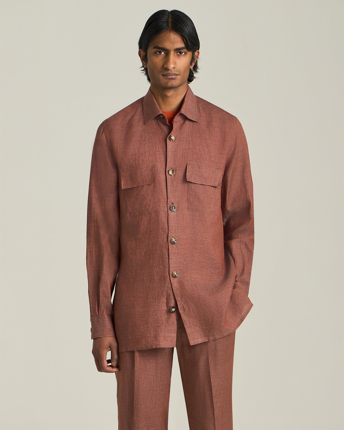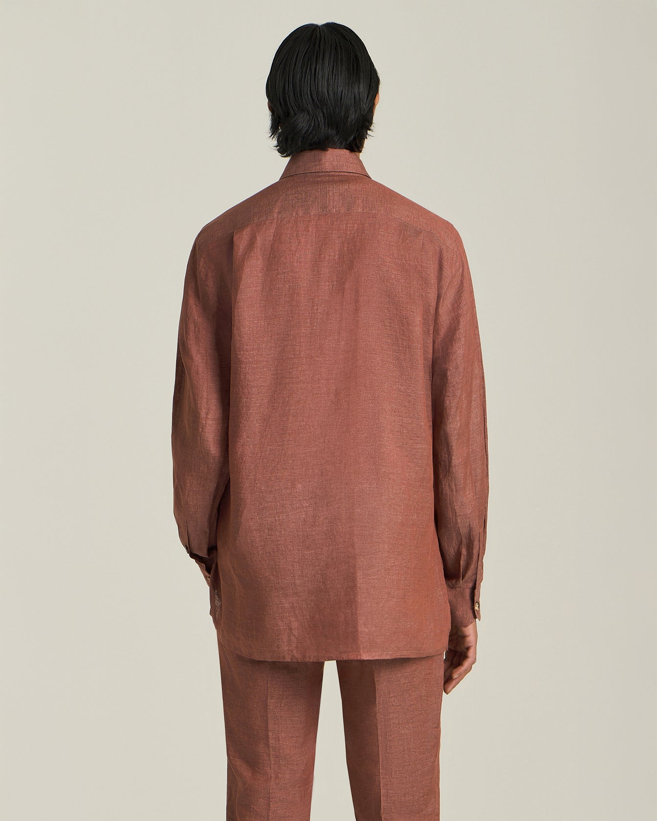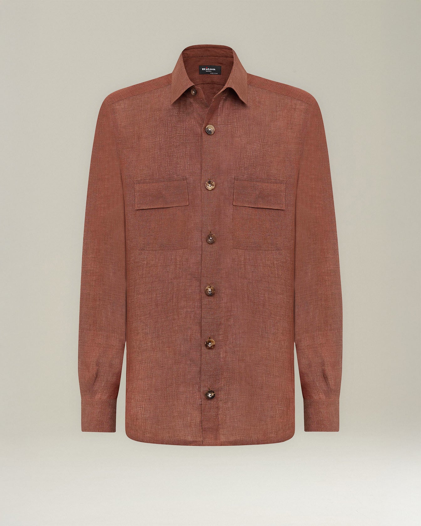 Crafted from a linen and fitted with natural horn buttons, this overshirt is reinterpreted with Kiton’s traditional sartorial mastery. Practical and functional, this garment can be worn over a T-shirt or under a jacket or coat, making it easy to adapt to different occasions. With a clear vocation for comfort, it fits in perfectly with the collection’s relaxed trend, making it ideal for leisure and for creating casual yet sophisticated looks.