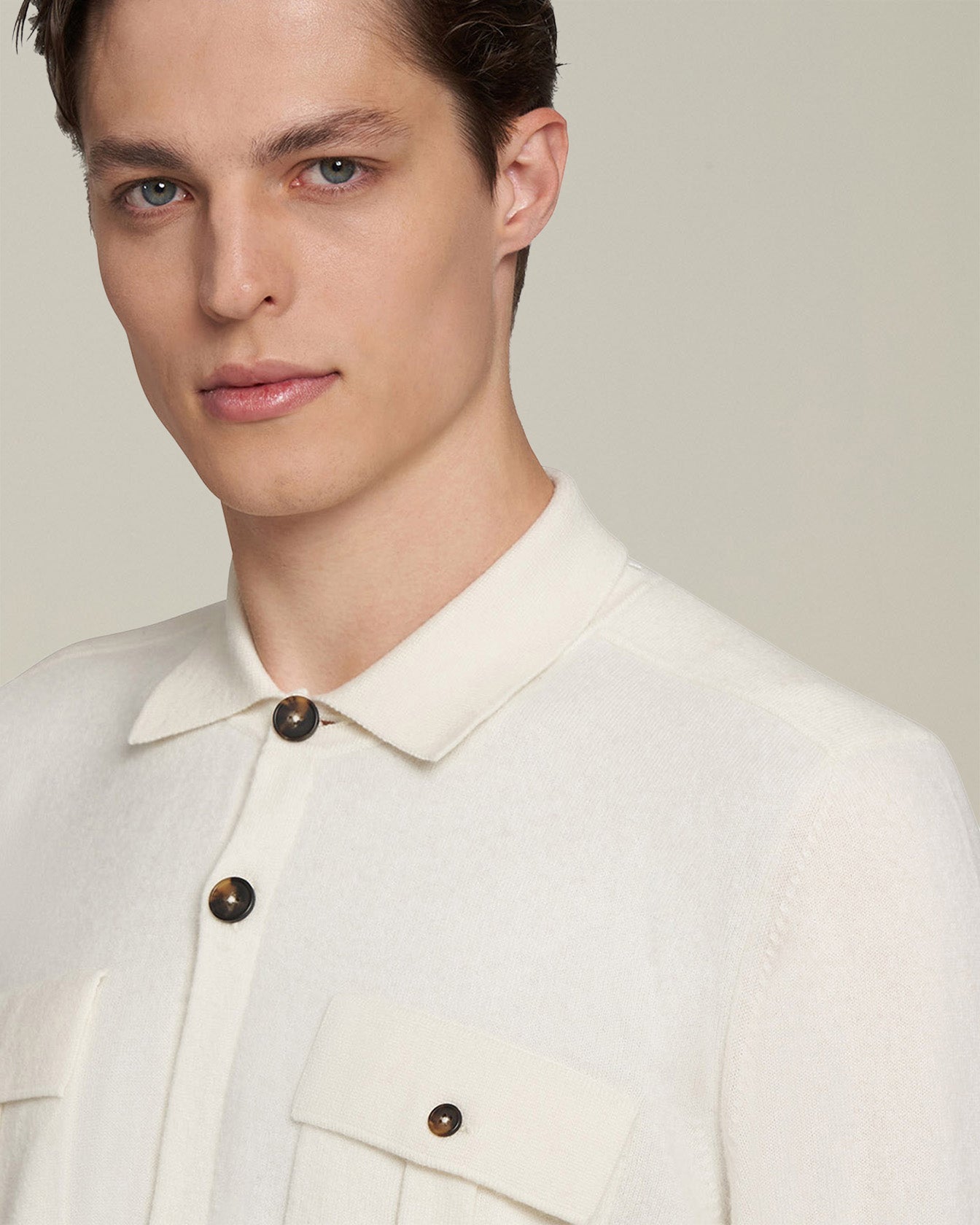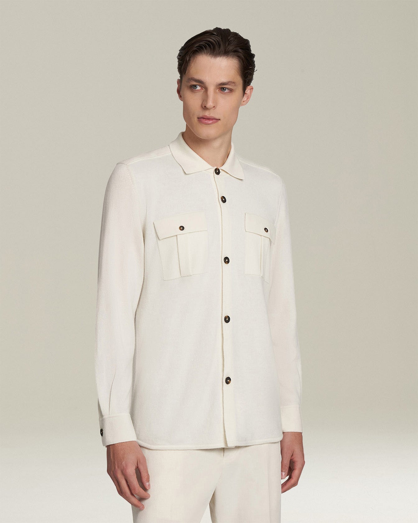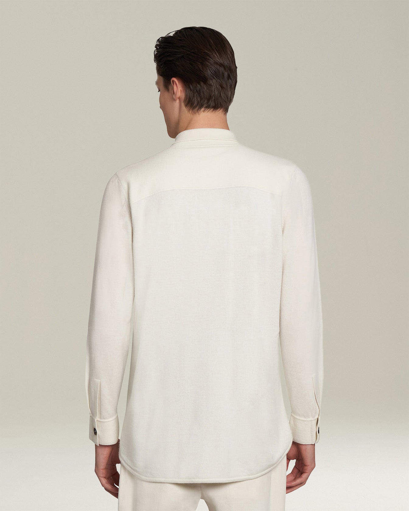 Shirt jacket in milk-white cashmere knit. Borrowed from the world of workwear and perfectly on-trend in streetwear, this garment is a new must-have in contemporary men’s wardrobes. Versatile, practical and functional, it can be worn over a T-shirt or under a jacket or coat. This shirt-jacket is the result of loyalty to tradition and the pursuit of excellence. Suitable for any occasion, this Kiton polo shirt can be worn as part of a casual look, or styled under a jacket for a sporty-chic ensemble. We recommend hand washing the garment inside-out. Do not bleach; do not tumble dry. Iron inside-out at a low temperature.