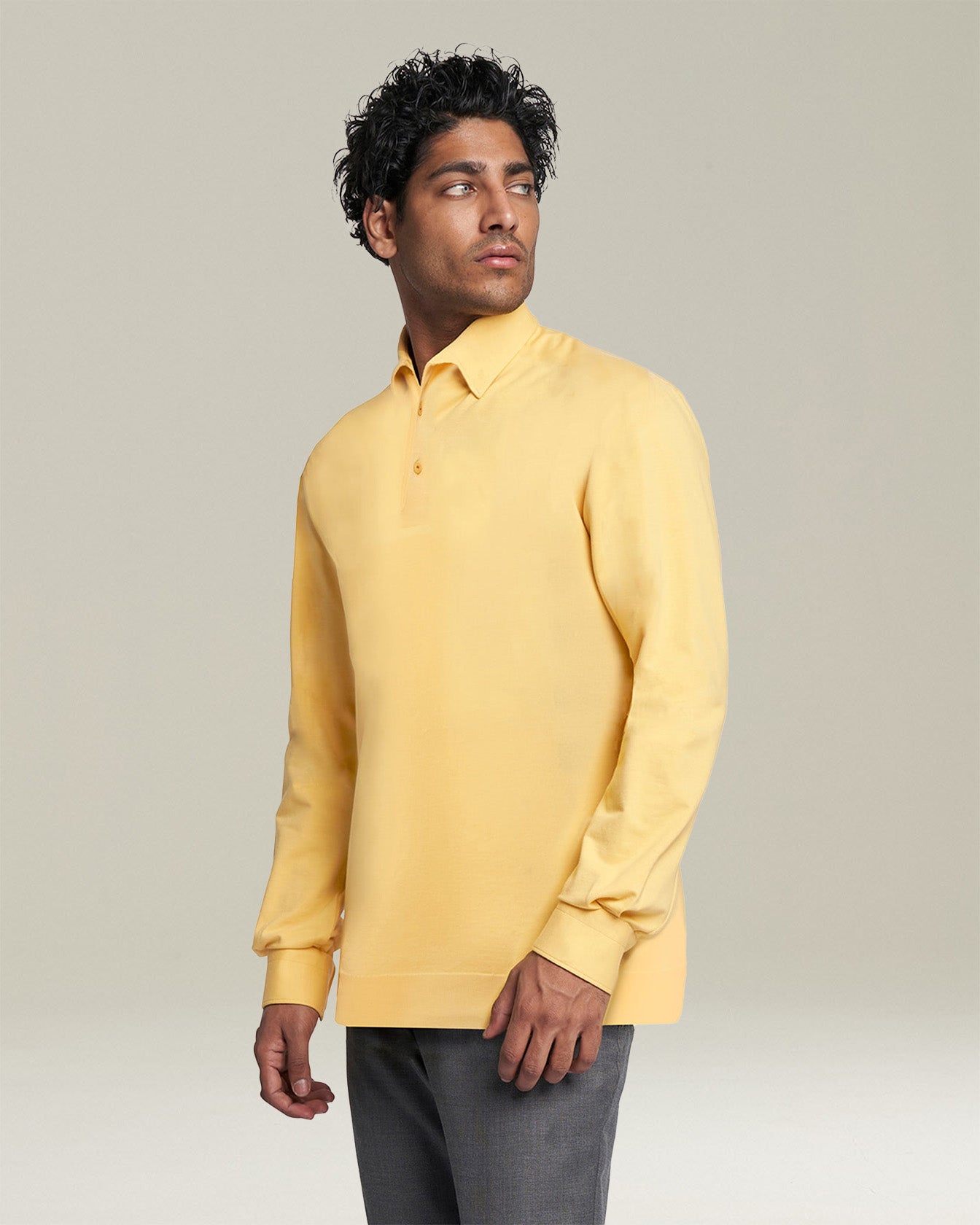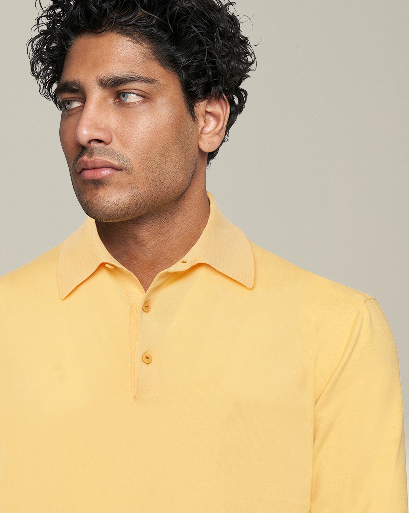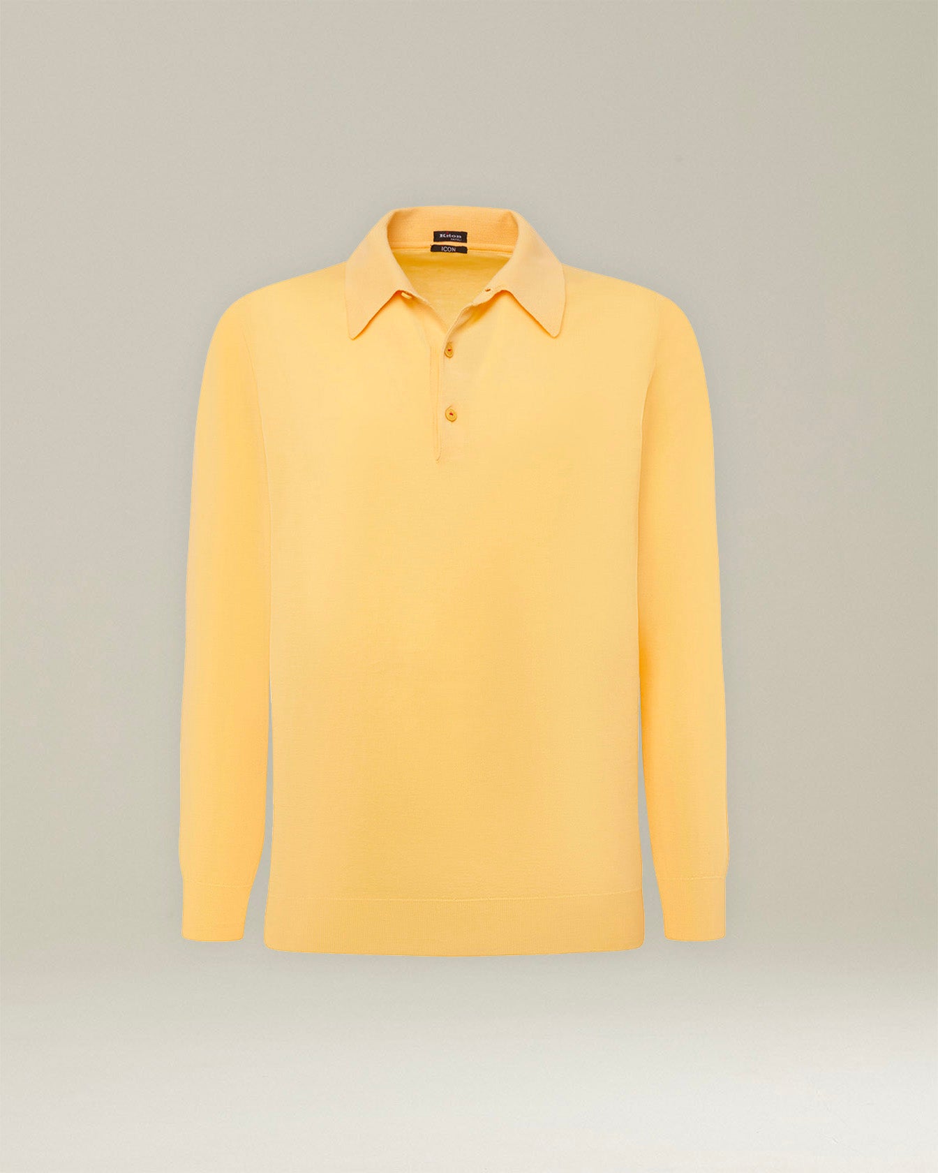 Yellow long-sleeve cotton polo shirt. Kiton knitwear is the product of fidelity to traditions and the quest for excellence. Each garment is crafted according to a precise process that includes 22 steps, half of which are executed strictly by hand. This pullover has been given a special treatment to make it exceptionally soft. This Kiton polo shirt is suitable for all occasions and will bring casual-chic style to any look. We recommend hand washing the garment inside-out. Do not bleach; do not tumble dry. Iron inside-out at a low temperature.