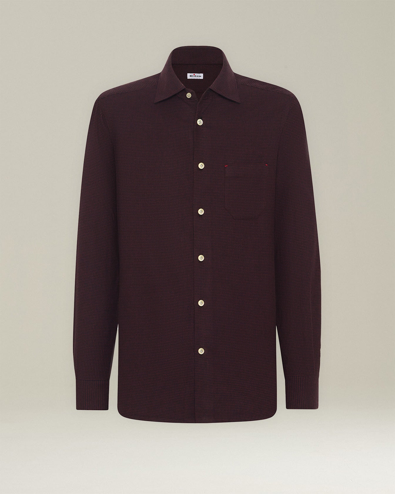 The sophisticated elegance of the houndstooth pattern is embodied in the Nerano shirt, presented in exclusive cotton flannel, a soft, fine fabric that reinterprets a clothing classic with a modern twist. Ideal for cold weather, this shirt is characterised by a breast pocket with two red bar tacks and a straight lower hemline. The back includes two side darts that provide greater comfort and facilitate movement without compromising on elegance. Handcrafted with the utmost care in our Naples atelier in 22 steps, this shirt is the quintessence of artisanal savoir faire: each cut of fabric, precisely aligned to create a uniform pattern, conceals finely hand-stitched seams that are exceptionally soft, guaranteeing exceptional comfort, harmoniously following the body’s movements and enhancing the silhouette. The sophistication of the garment is further enhanced by the hand-carved buttons made from prized Sydney Pinctada Maxima mother of pearl, caught off the coast of Australia.