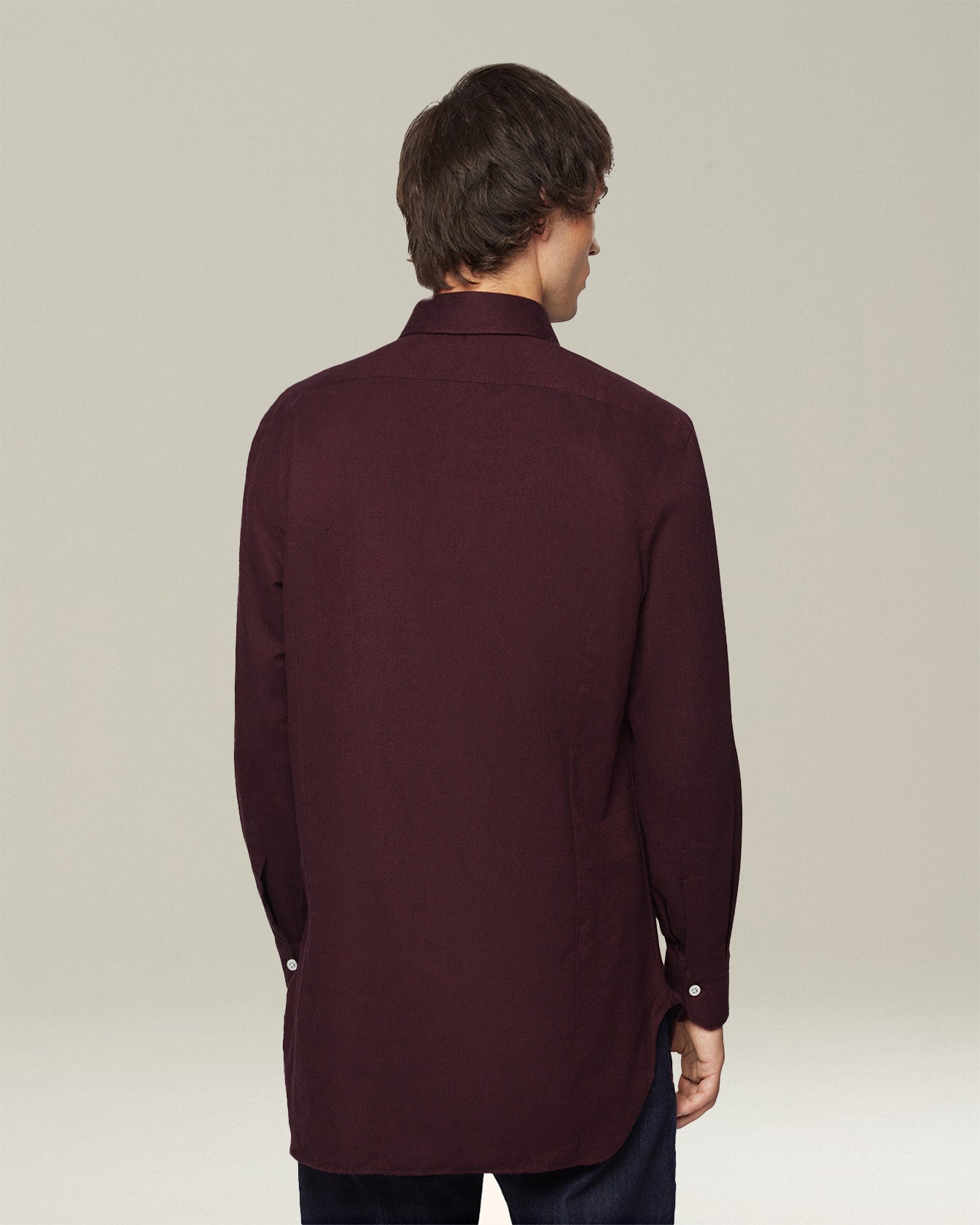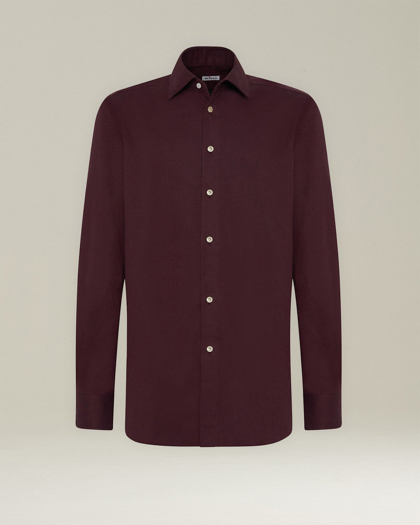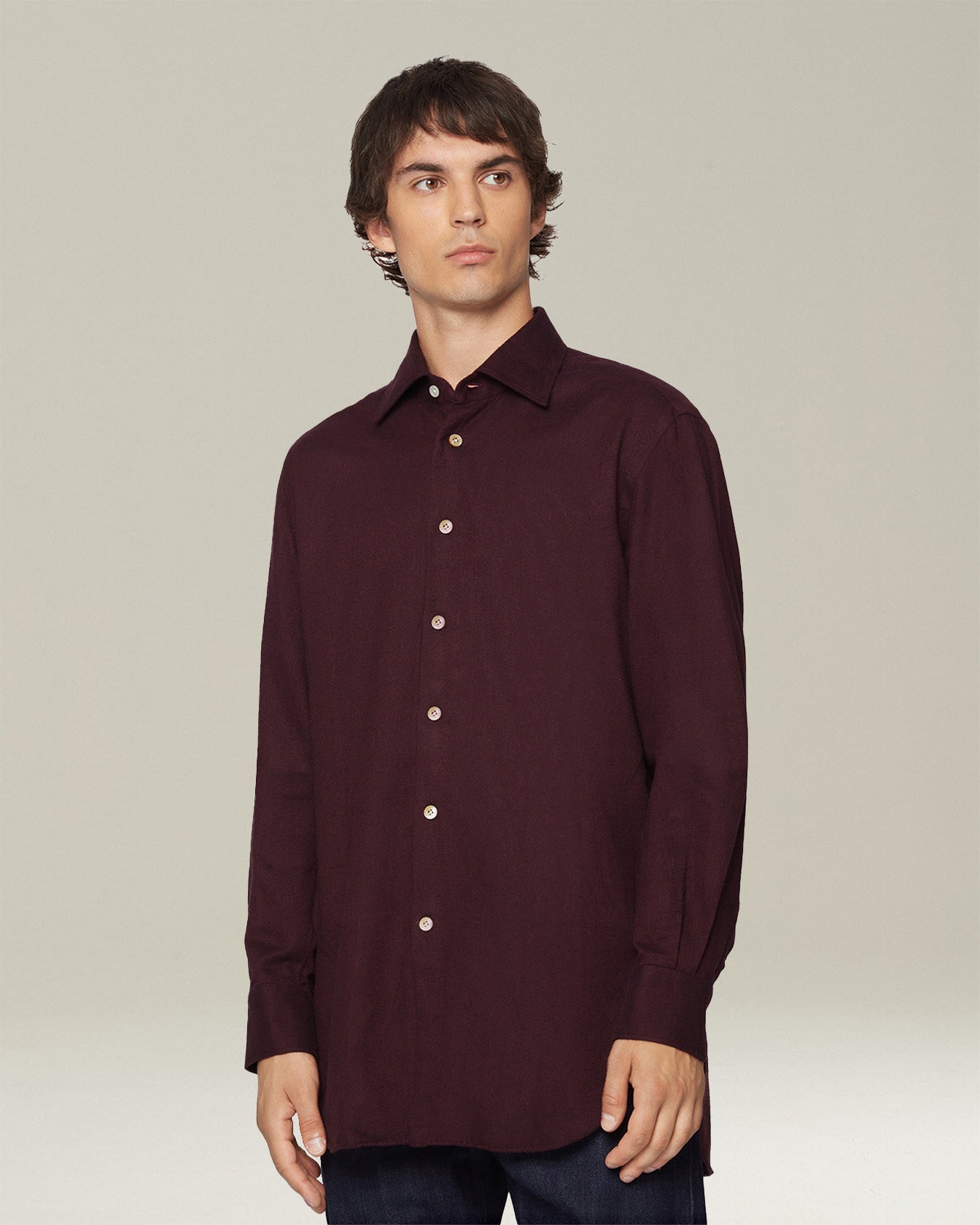 The soft, high quality cotton flannel elegantly reinterprets a sartorial classic in a contemporary and casual way. Perfect for cold weather, this shirt offers warmth and comfort without compromising on style, ideal either under a blazer or paired with smart trousers, adding a touch of sophisticated practicality to a man’s wardrobe. Made with meticulous care through 22 handcrafted steps in our Naples atelier, this shirt embodies the quintessence of craftsmanship savoir faire: each cut of fabric, precisely aligned to ensure a uniform pattern, conceals finely hand-sewn seams that are extraordinarily soft and ensure exceptional comfort, harmoniously following your movements and enhancing your silhouette. The sophistication of the garment is further enhanced by the hand-carved buttons made from prized Sydney Pinctada Maxima mother of pearl, caught off the coast of Australia.
