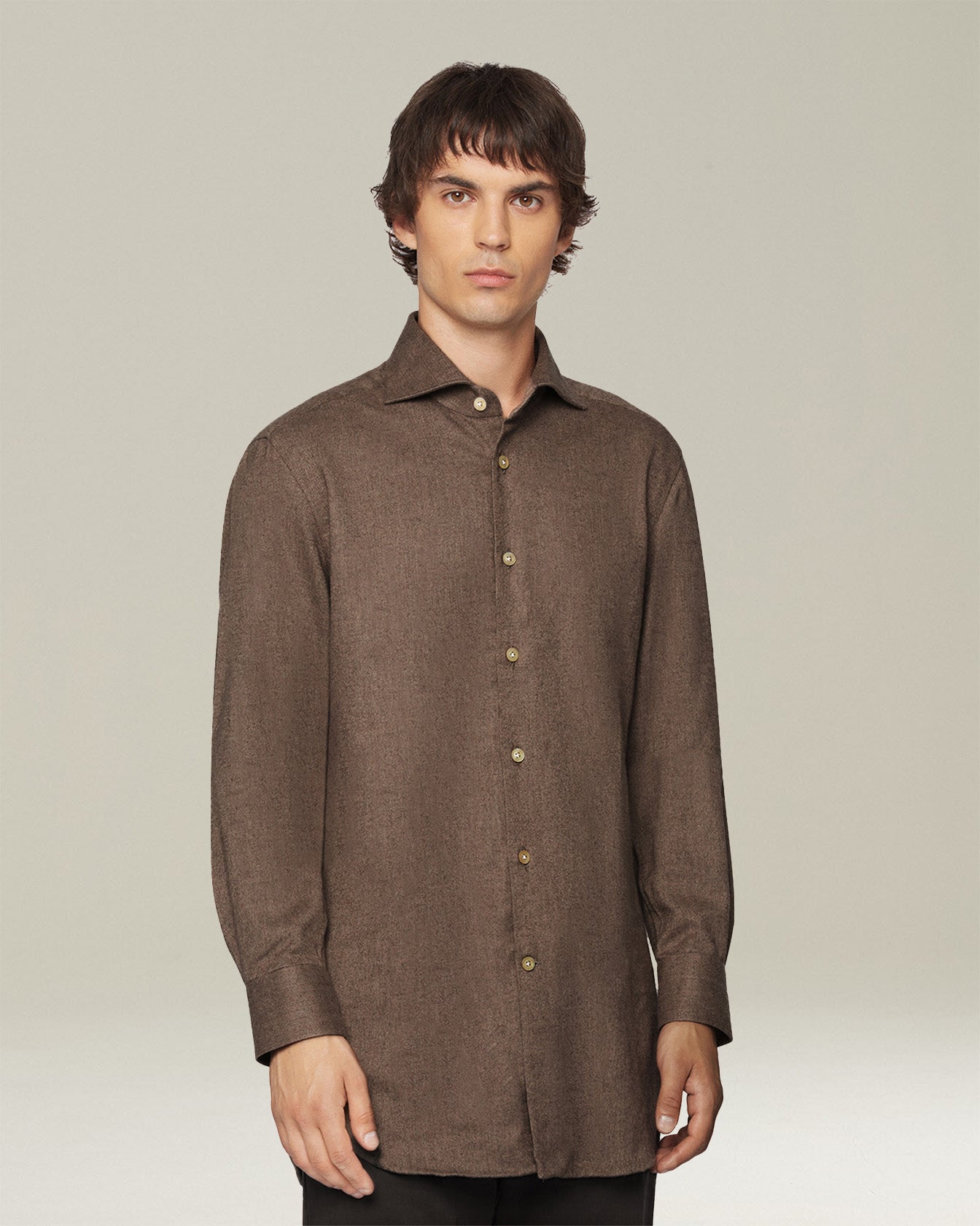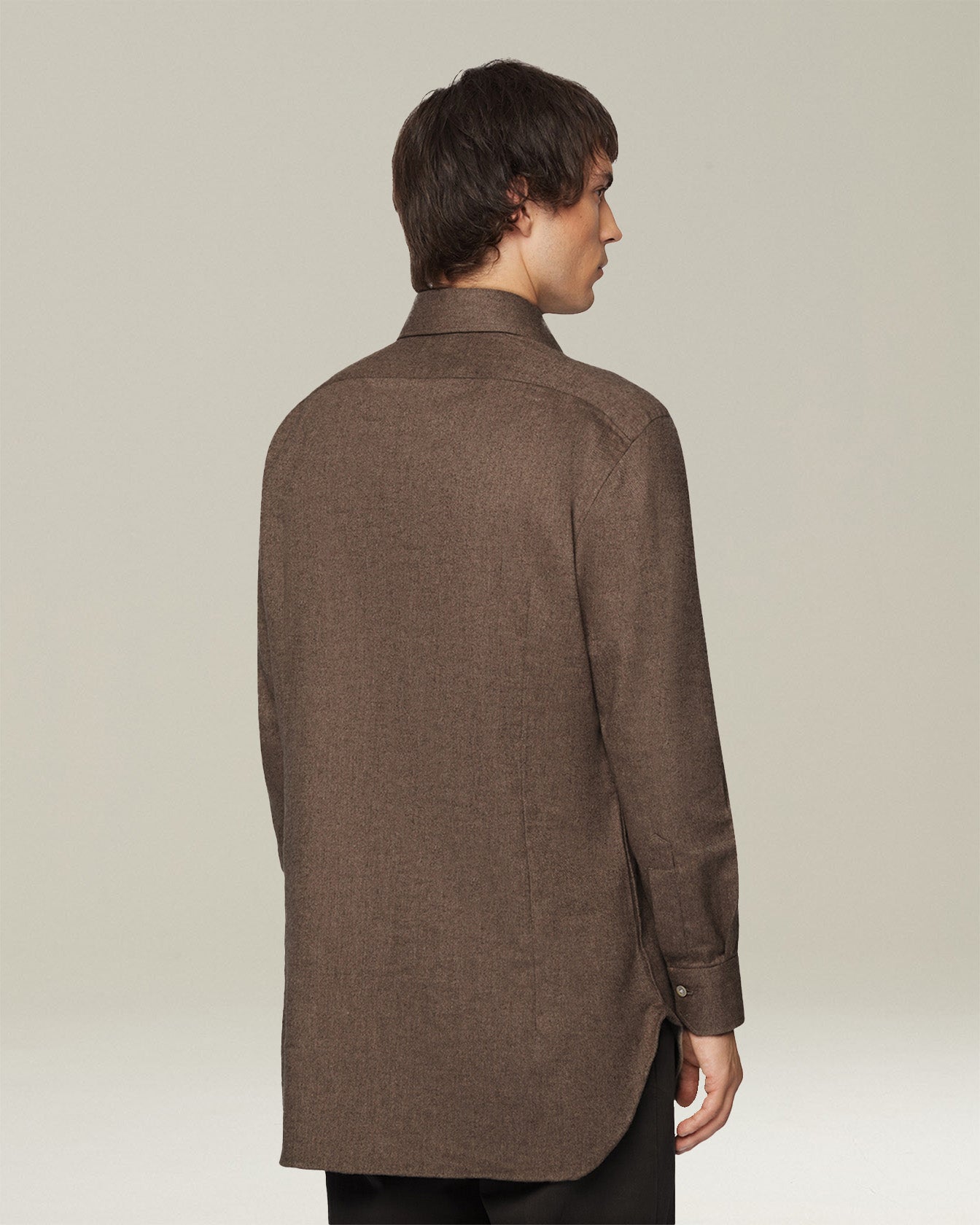 The luxurious cotton flannel elegantly reinterprets a tailoring classic in an effortless contemporary style. Perfect for the colder months, this shirt offers warmth and comfort without compromising on aesthetics, ideal either under a blazer or paired with smart trousers, adding a touch of sophisticated practicality to a man’s wardrobe. Carefully handcrafted in our Naples atelier in 22 steps, this shirt is the quintessence of the art of tailoring: each cut of fabric, precisely aligned to ensure a uniform pattern, conceals finely hand-stitched seams that are exceptionally soft and comfortable, following the movement of the body and enhancing the silhouette. The sophistication of the garment is further enhanced by the hand-carved buttons made from Sydney Pinctada Maxima mother of pearl, cultivated off the coast of Australia.