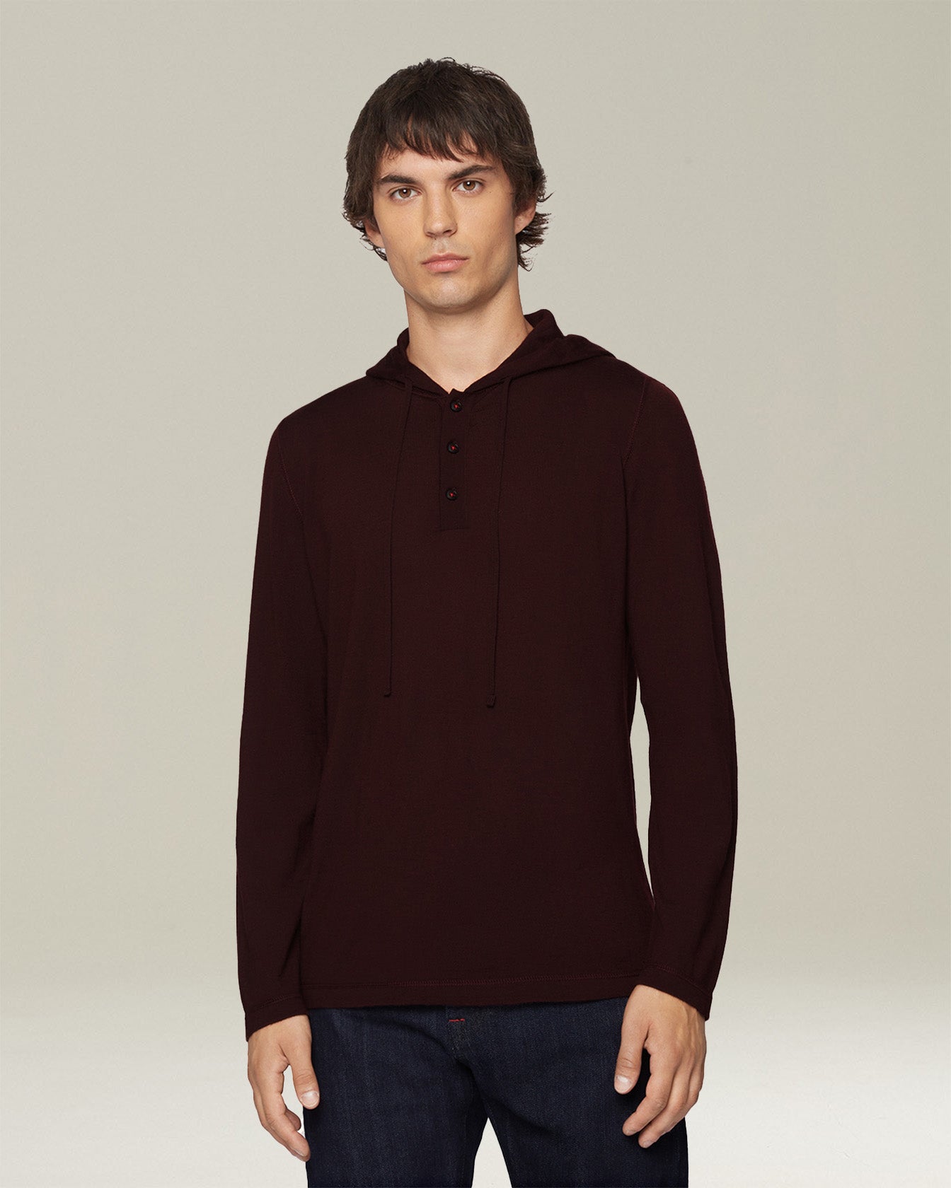 A timeless winter classic that can be worn under a jacket or combined with other knitwear for a sophisticated play of overlays and colours. Crafted from the exclusive and iconic combination of cashmere and silk, this hooded button-up jumper is the result of a meticulous process involving twenty-two steps, half of which are carried out strictly by hand. The softening treatment it has undergone gives the jersey an extraordinary softness. Kiton knitwear is the emblem of loyalty to tradition and the continuous quest for excellence.