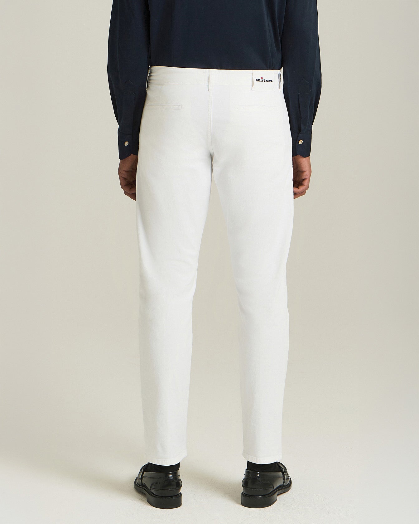 Kiton trousers, whether casual or sporty, are designed at the brand’s own factory in Marcianise, near Naples, a place where the art of tailoring is masterfully combined with the finest quality raw materials, selected for their exceptional sophistication. The designs, characterised by an impeccable cut and ergonomic fit, are constantly reinterpreted to create modern garments that enhance the wearer’s silhouette and are perfect for any occasion. The Kiton philosophy is expressed through meticulous attention to detail and quality, creating trousers that are not just garments, but authentic symbols of style and comfort.