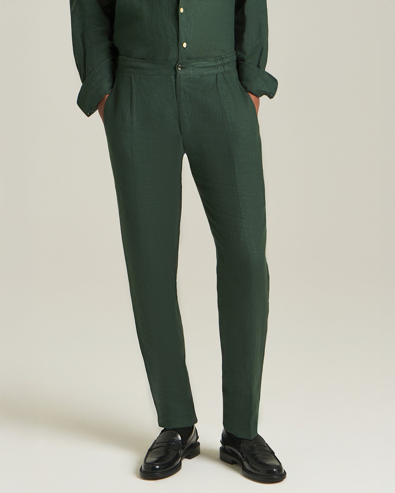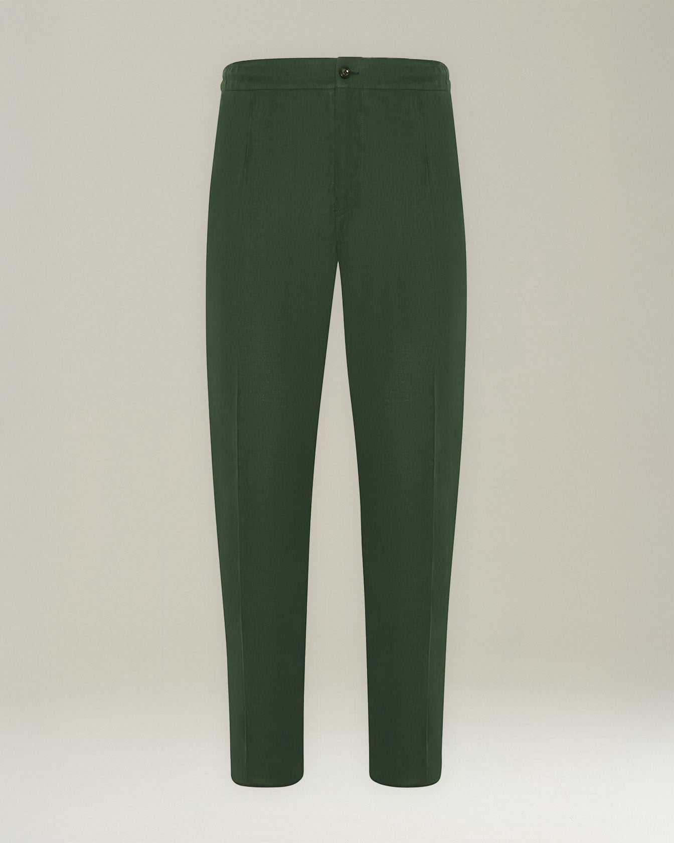 Kiton trousers, a must-have in a man’s wardrobe, are reinterpreted with a more relaxed, casual twist, with a loose, informal fit. Crafted from the finest Irish linen, this garment is characterised by its attention to tailored details, such as welt pockets and French darts. A drawstring waistband with a sporty feel adds a modern, functional touch, making these trousers the perfect blend of comfort and style. Ideal for travelling, it combines practicality with relaxed elegance, embodying Kiton’s philosophy of sophisticated, versatile fashion.