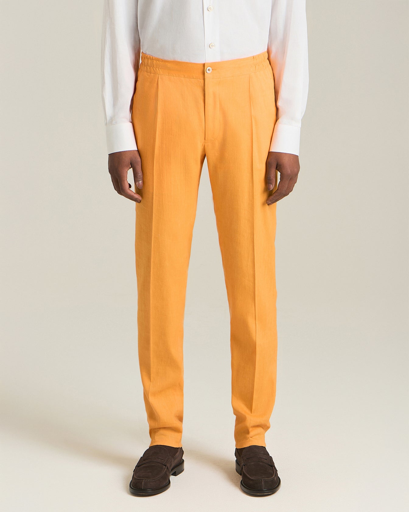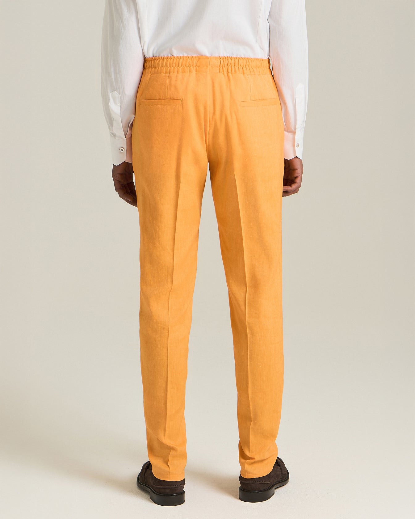 Kiton trousers have been reinterpreted with an even more casual twist thanks to a roomier, more relaxed fit. Crafted from an exclusive blend of linen and wool, these trousers feature welt pockets and a French dart. The drawstring waist with a sporty soul meets darts inspired by the world of tailoring to express the casual and elegant vocation of the garment. Combining comfort and style, this garment promotes the culture of relaxed elegance as a synthesis of sophistication and practicality, perfect for travelling with class.