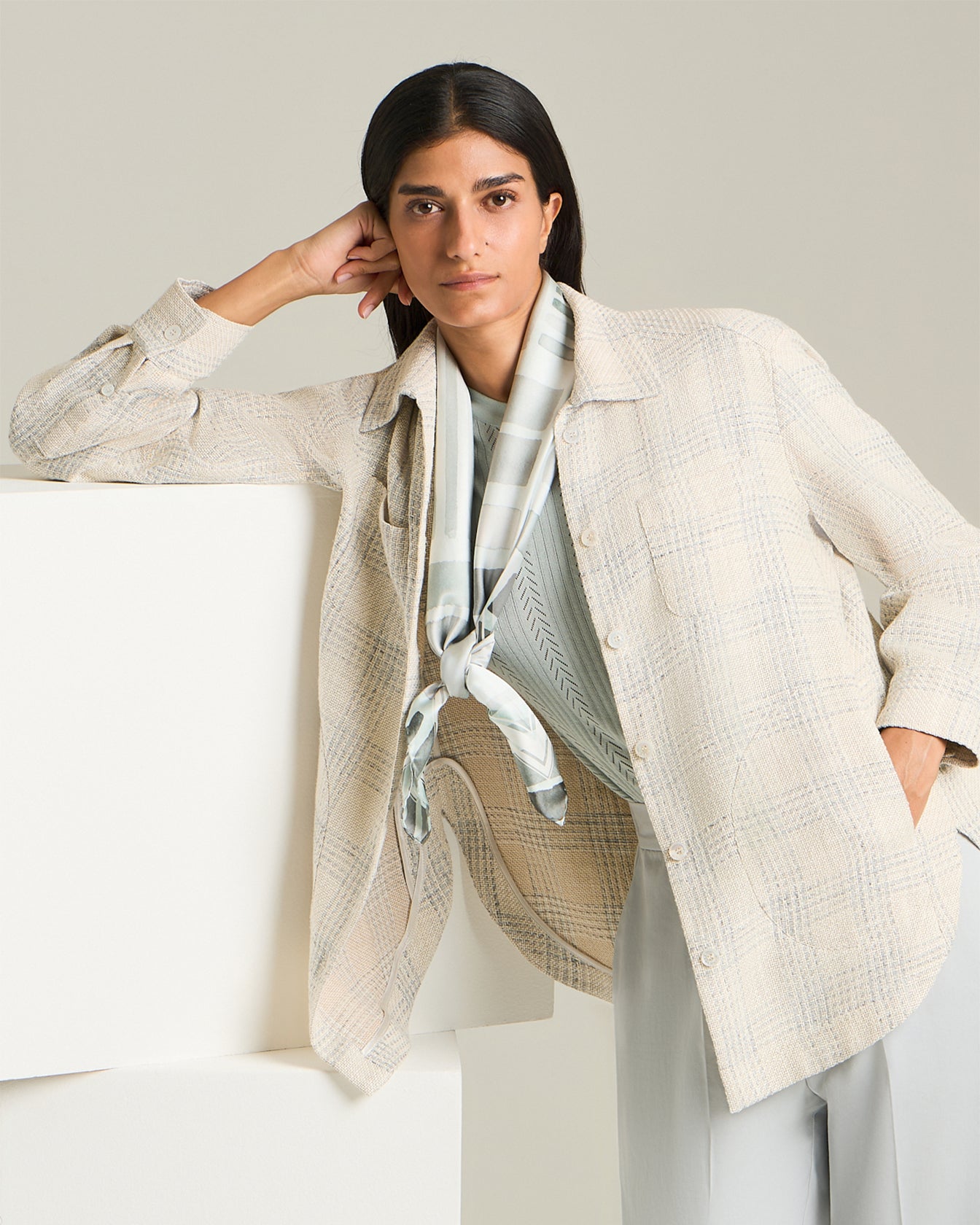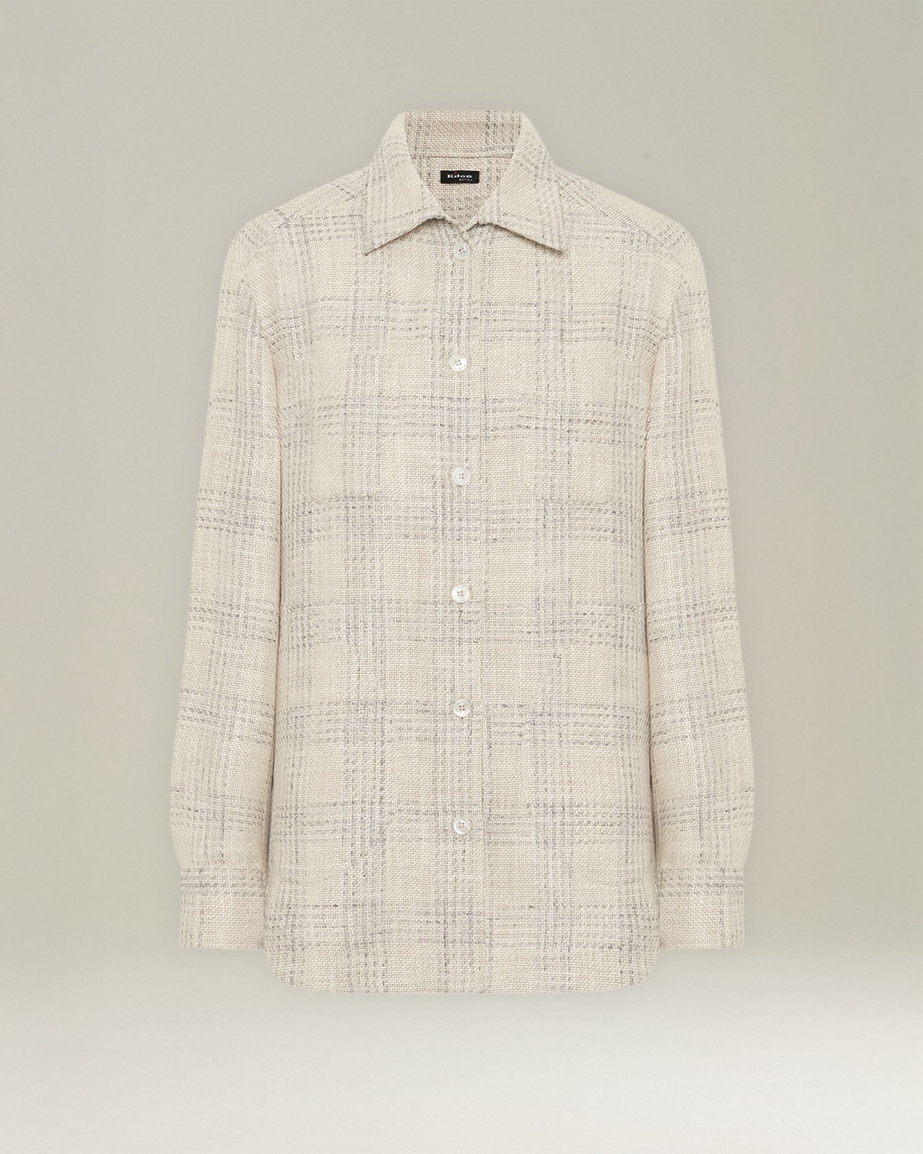 SILK AND LINEN BLEND CHECKED OVERSHIRT