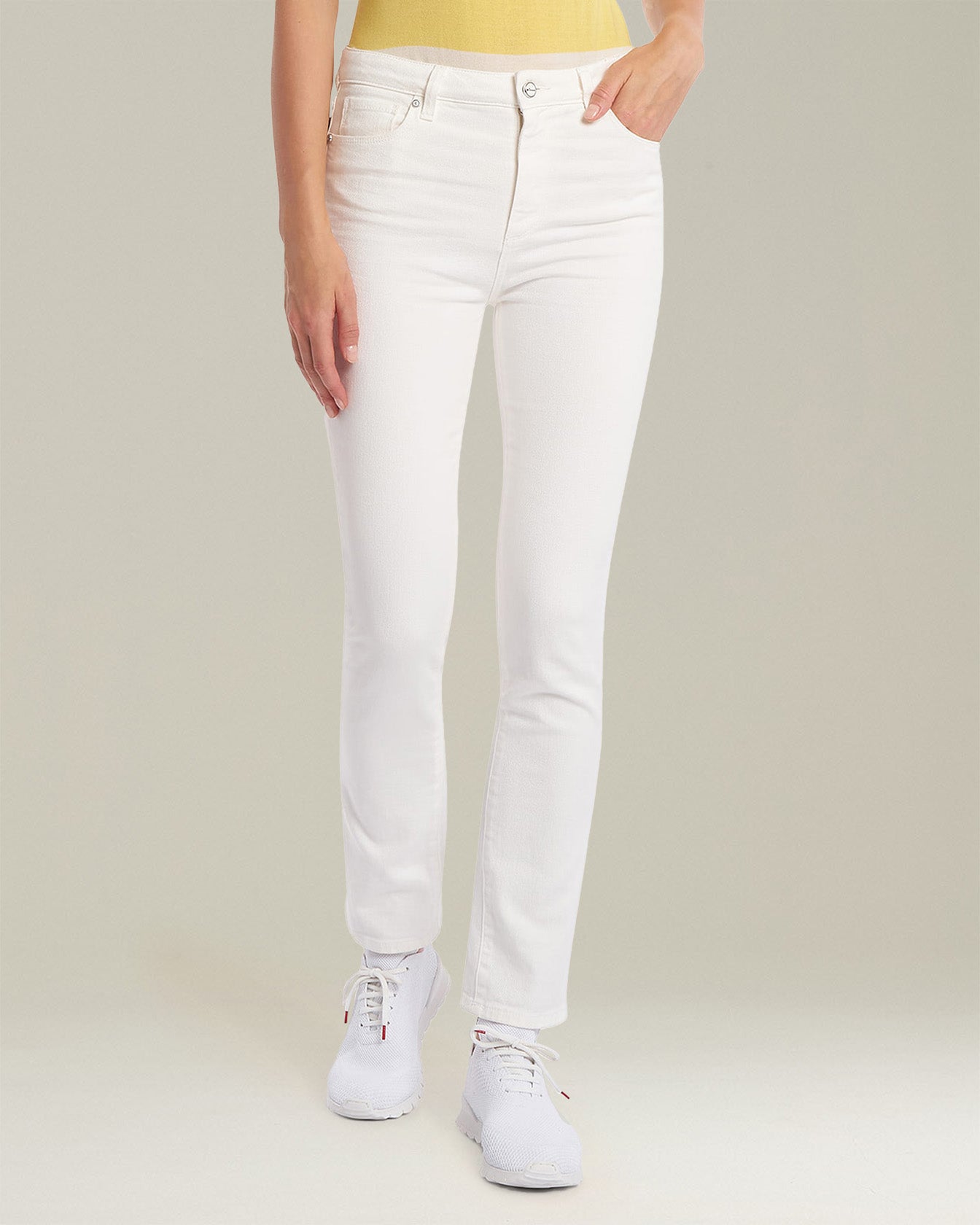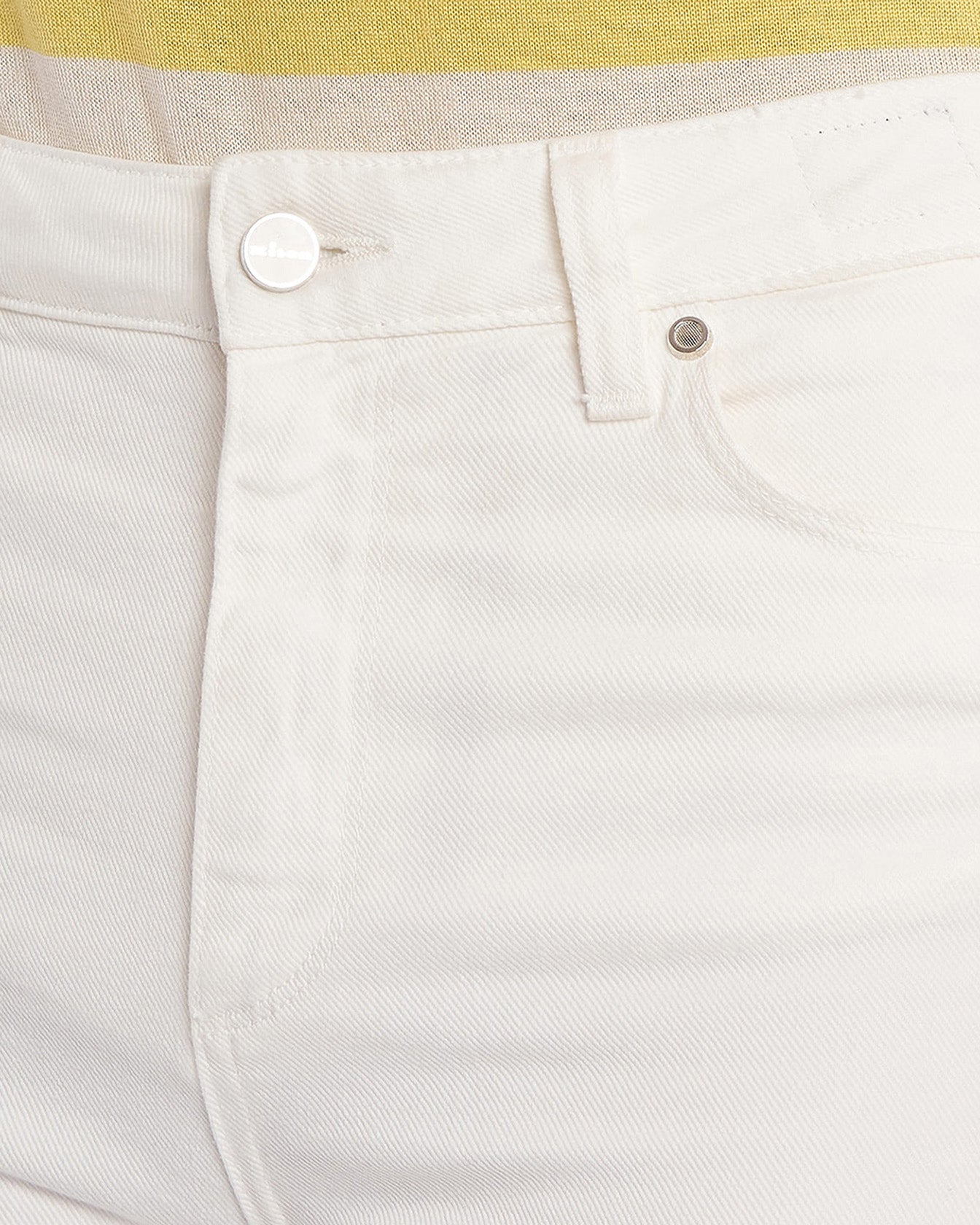 These five-pocket slim-fit high-waisted jeans come in white cotton and cashmere denim. An iconic piece when it comes to contemporary, laid-back elegance, Kiton jeans combine their light weight with durability thanks to the double seams that make them indestructible. The small percentage of elastane makes these jeans extremely comfortable: the fabric gently encloses the leg without compromising the shape. These non-pleated jeans feature contrasting top-stitching. Logo detail: K embroidery with contrasting trim on the rear waistband. We recommend hand-washing the garment inside-out at 30ºC.