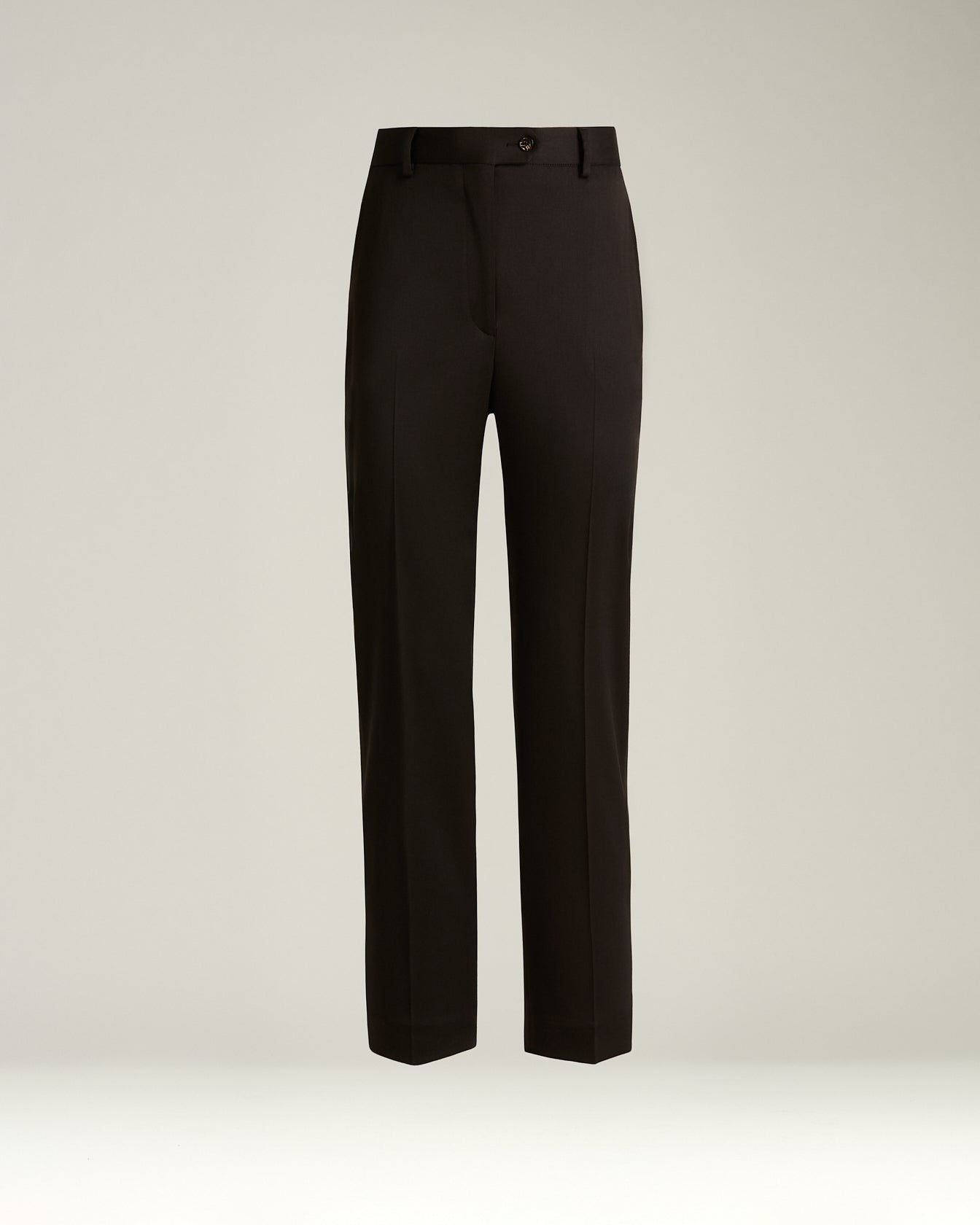 Sleekness and precision characterise these stretch virgin wool trousers. The tapered line follows the leg with subtle elegance, while the regular waist and clean cut define the silhouette without restriction. The deep and versatile full brown interprets classic style with a contemporary accent, ideal for a dynamic, sophisticated wardrobe.