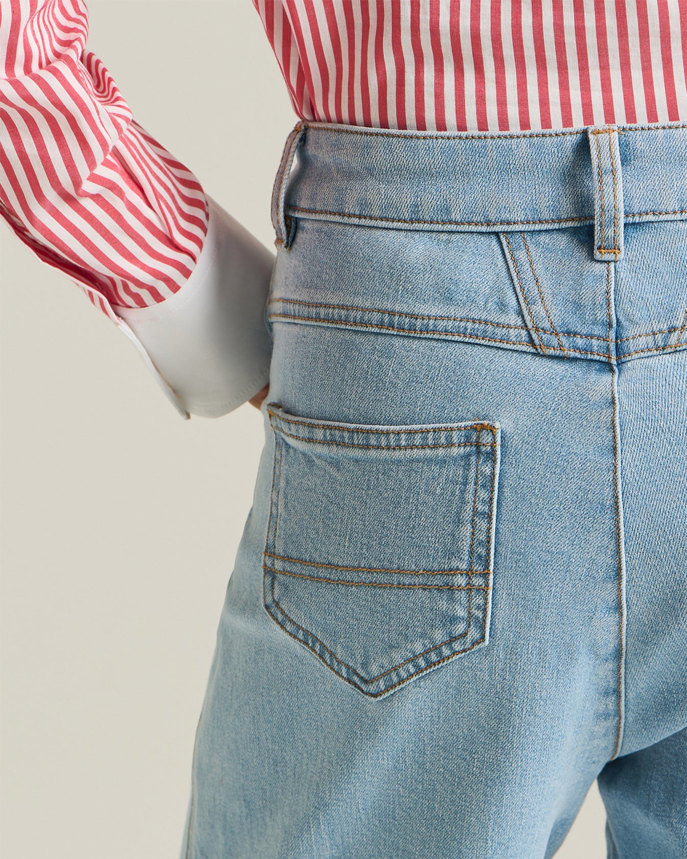 Contrasting a casual soul with sophisticated detailing, Kiton’s iconic five-pocket jeans are crafted from denim with a slim fit, high waist and flared legs. This garment is the essence of relaxed, modern elegance, combining lightness and strength thanks to double stitching for exceptional durability. A small percentage of elastane in the fabric provides unparalleled comfort, gently hugging the leg without compromising the shape. Dart free with contrasting stitching to enhance the design. To complete the look, logo embroidery on the inside of the pocket adds a touch of class that elevates these jeans to a level of sophisticated sophistication.