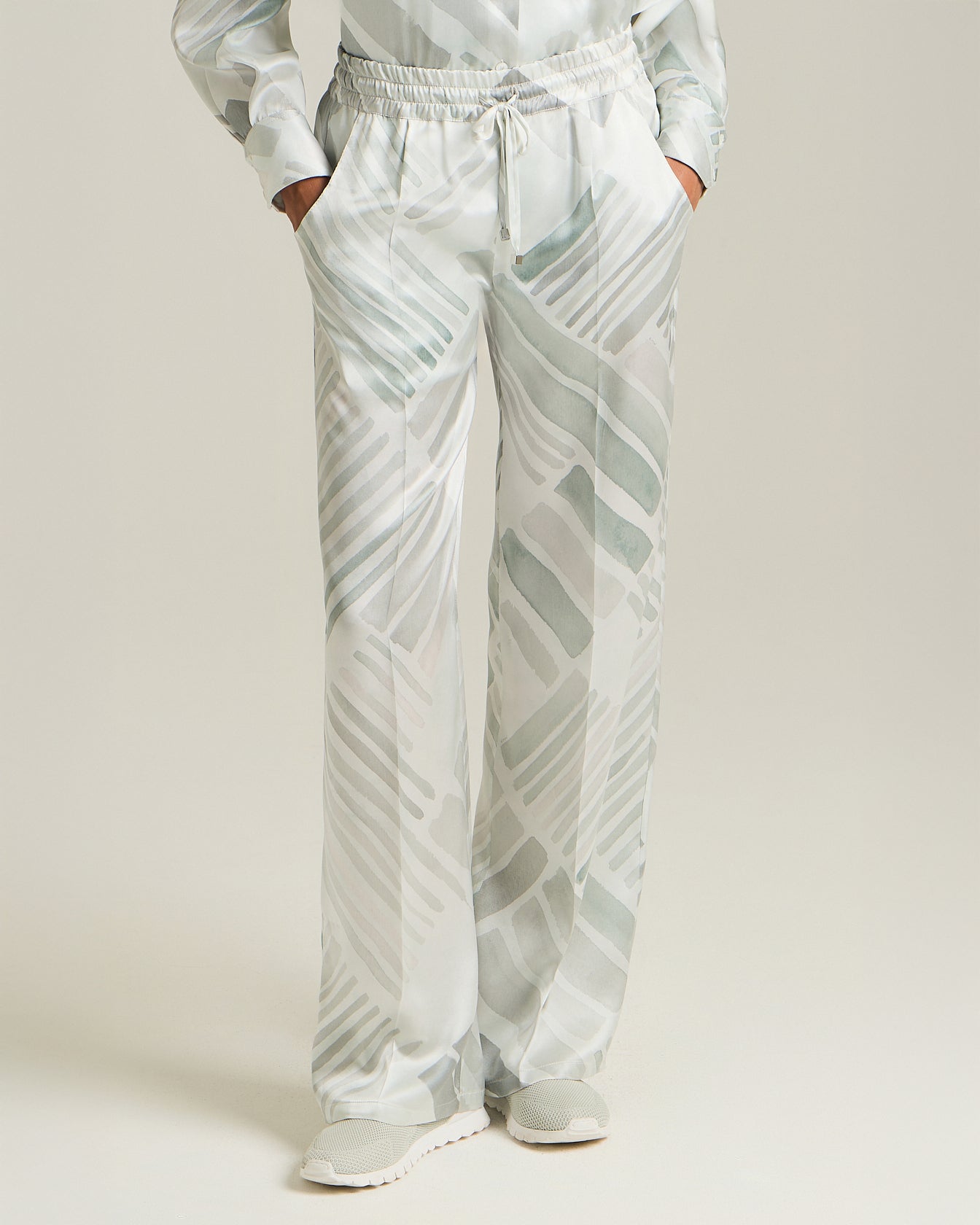 SILK TROUSERS WITH ETHNIC BRUSH PATTERN