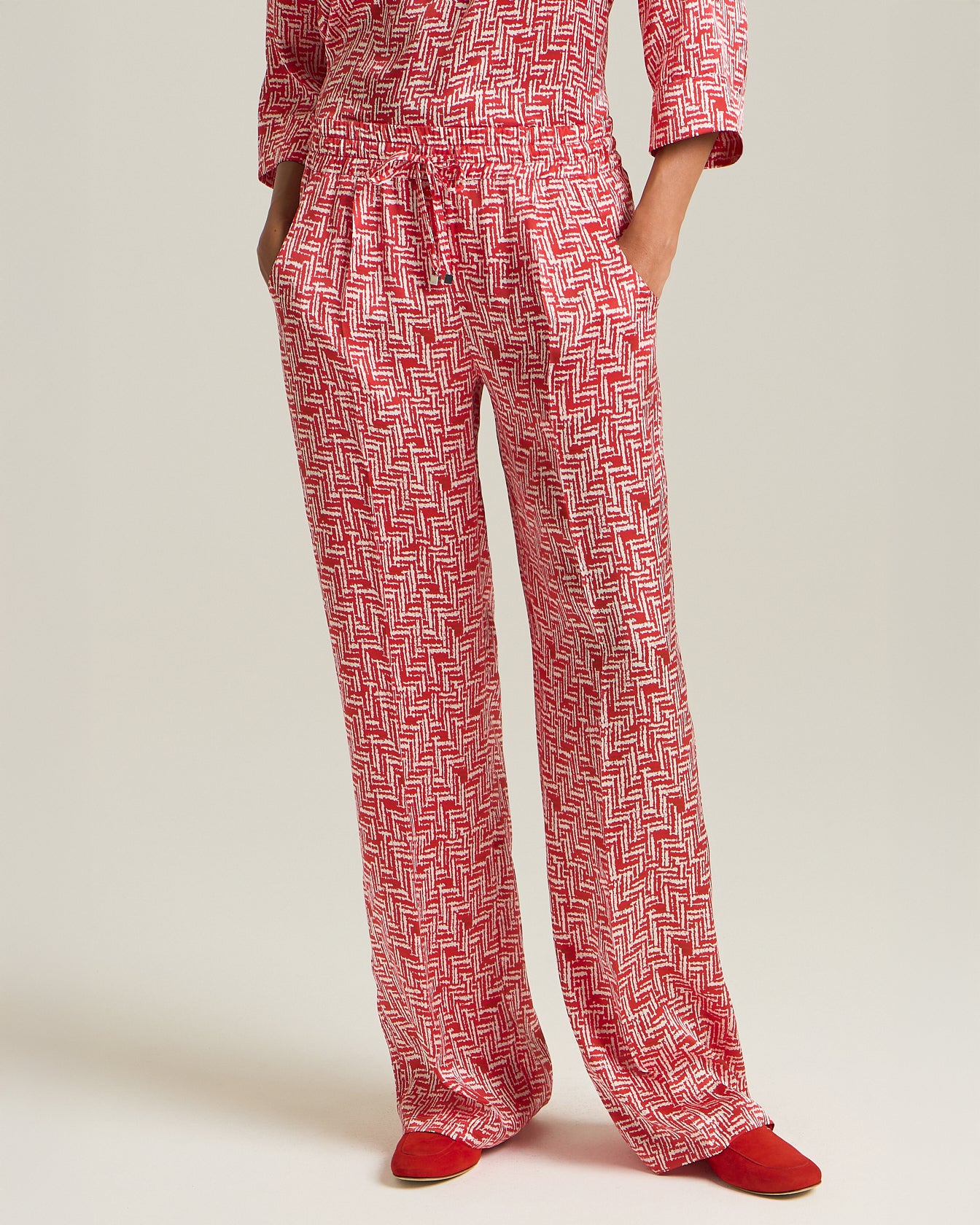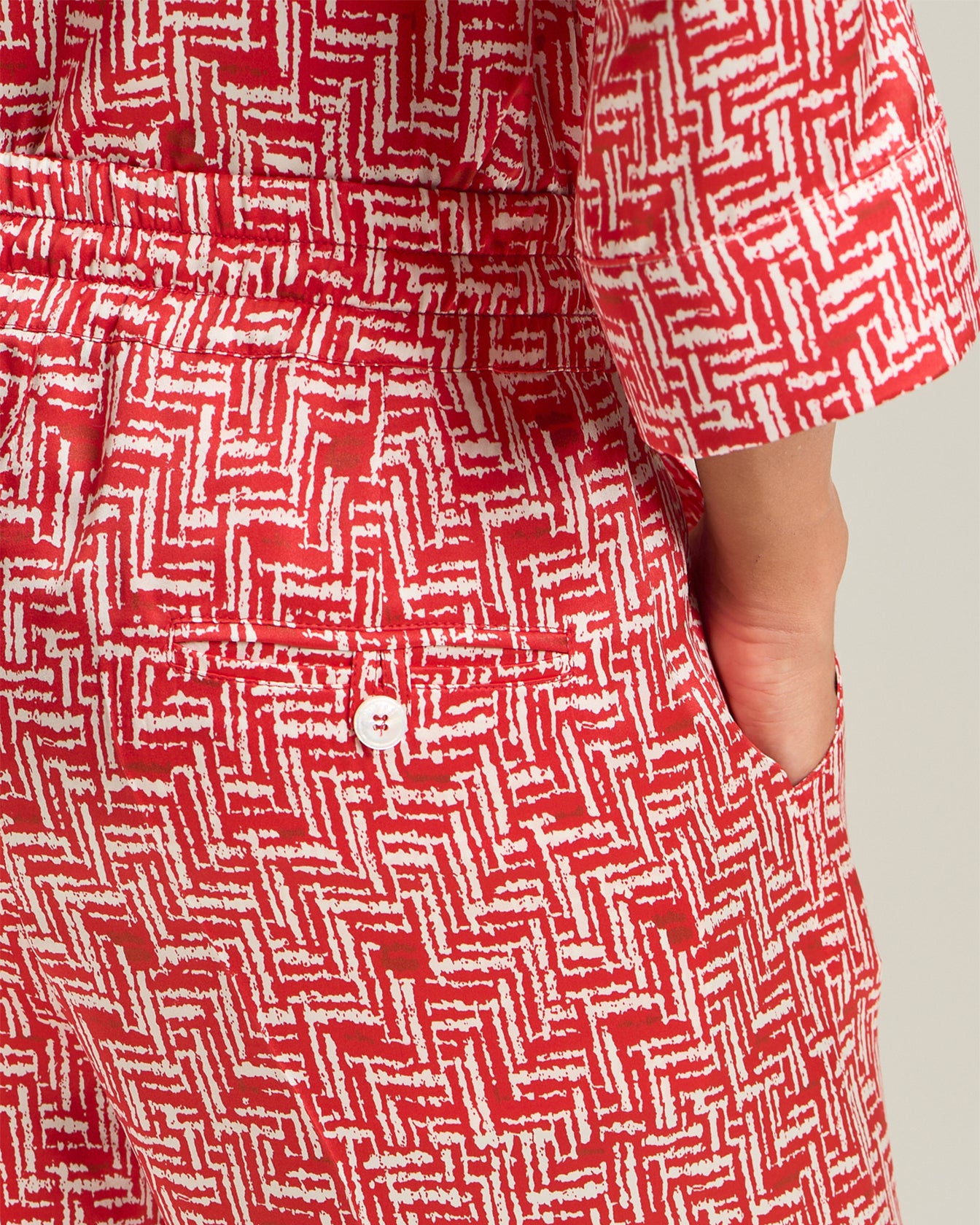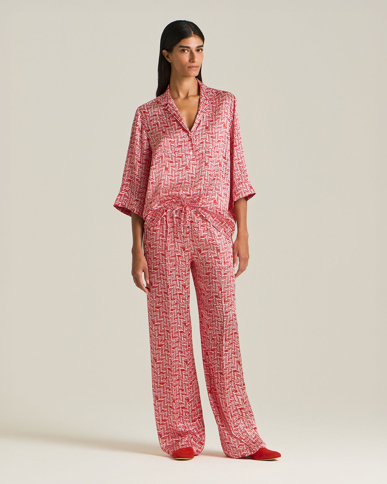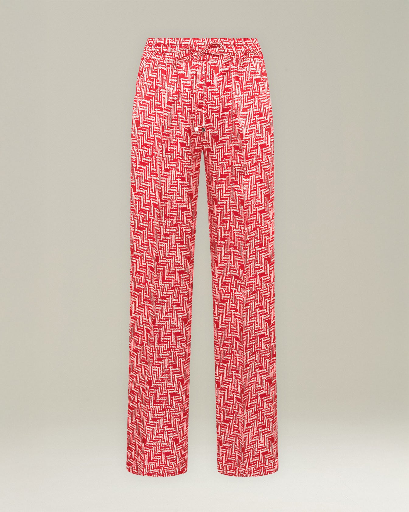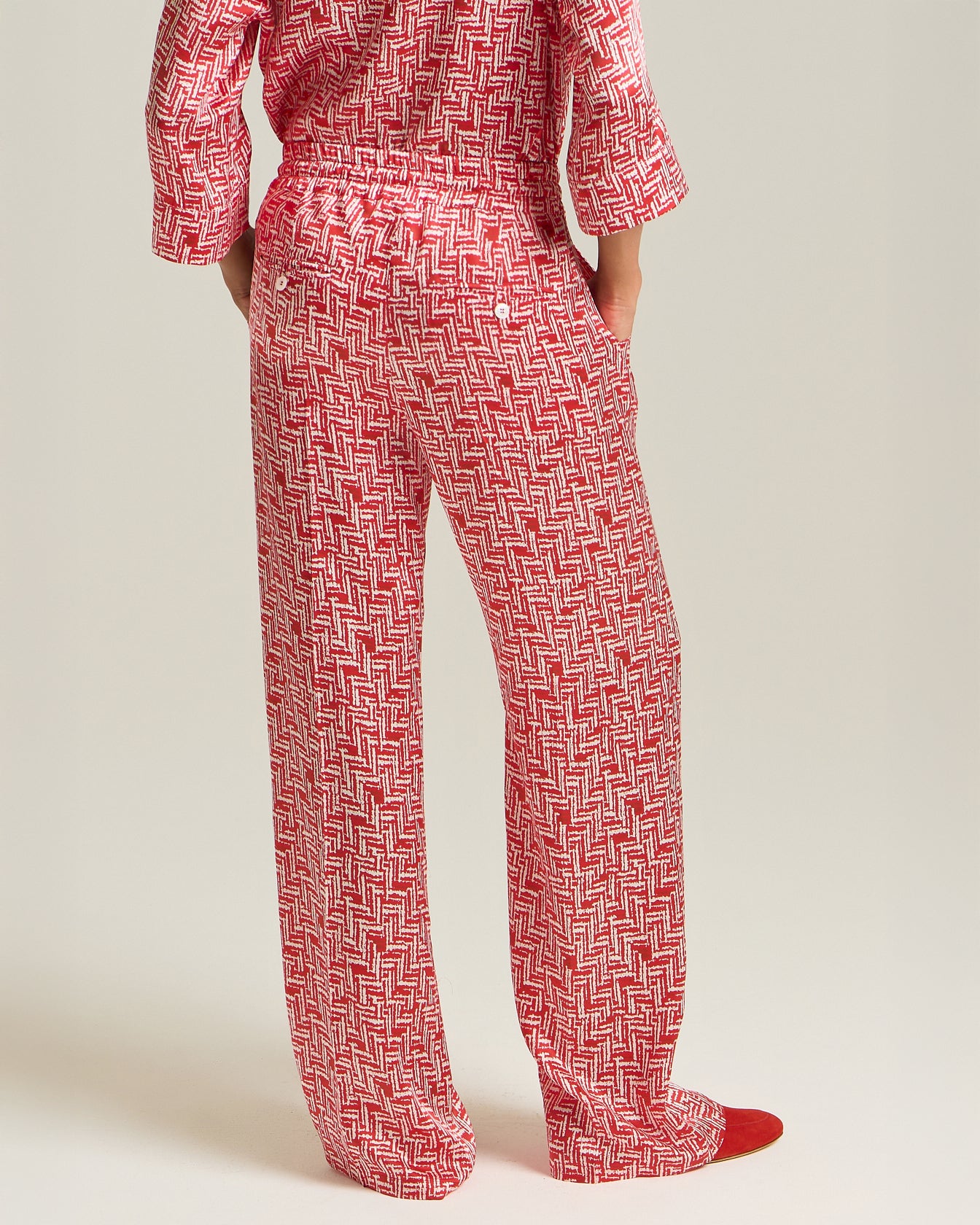 SILK TROUSERS WITH SCARLET STAIRS PATTERN
