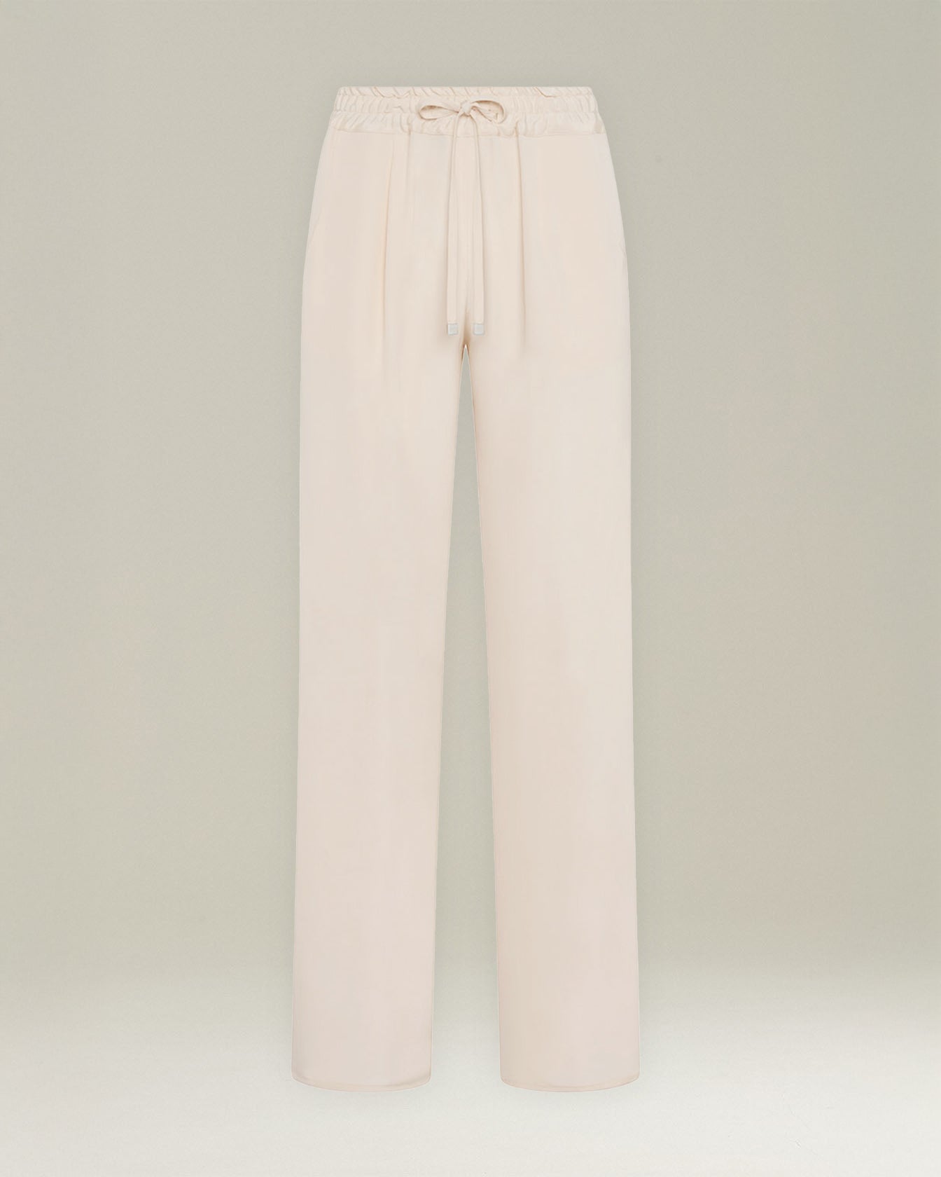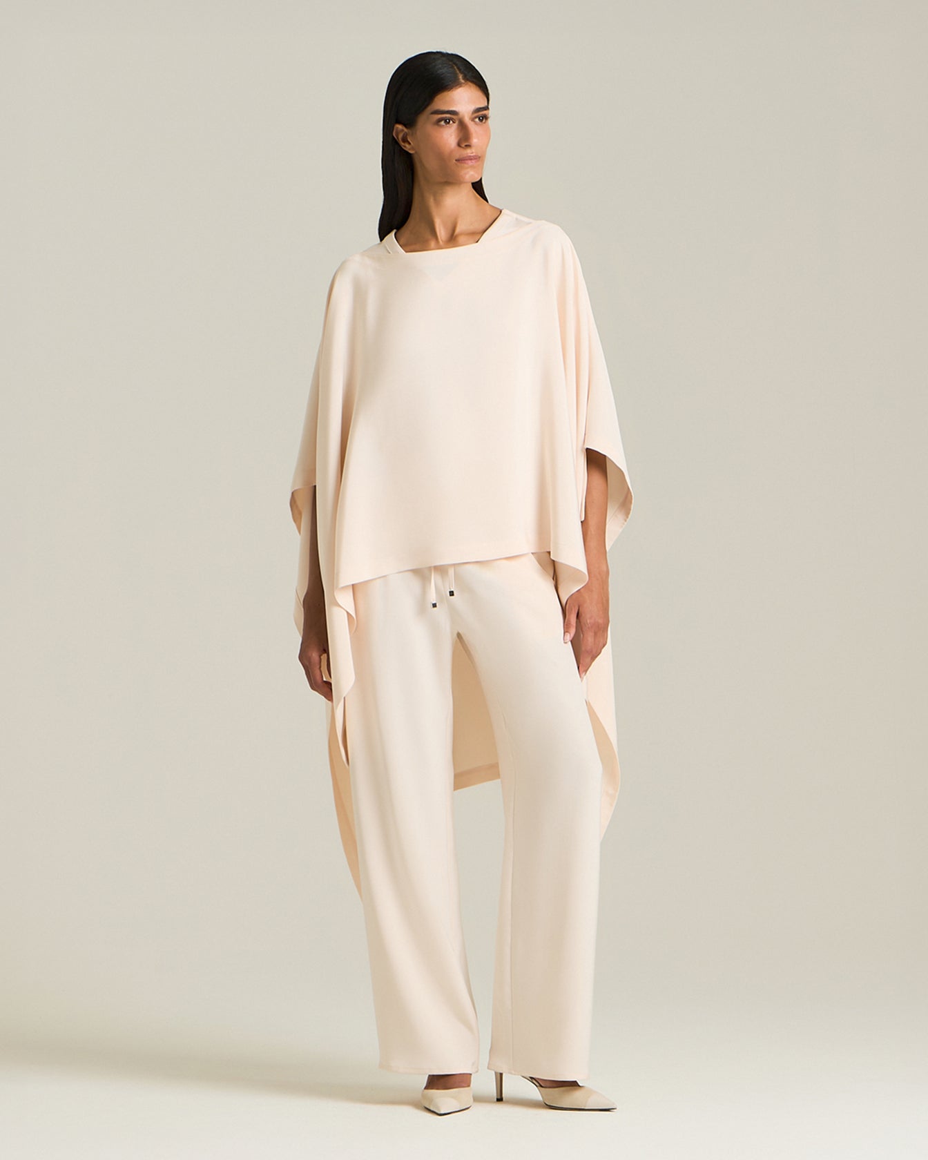 These trousers combine casual style with comfort, embodying modern, relaxed elegance. Ideal for travelling in style, it is crafted from soft silk that gives the fabric a lively, lightweight touch. The high elasticated waist and wide leg create an oversized silhouette with a casual effect. A versatile garment, perfect for pairing with sporty looks or a casual-chic outfit complemented by a jacket.
