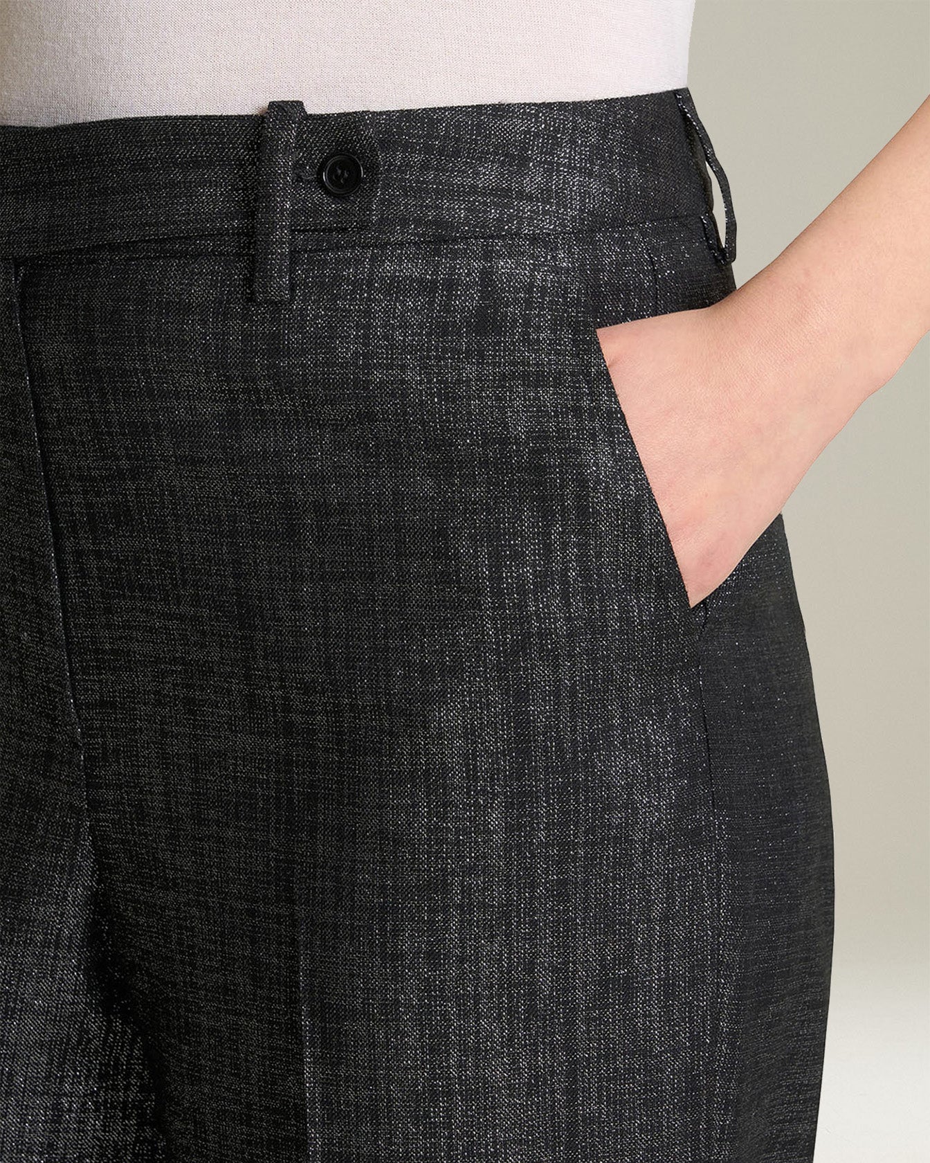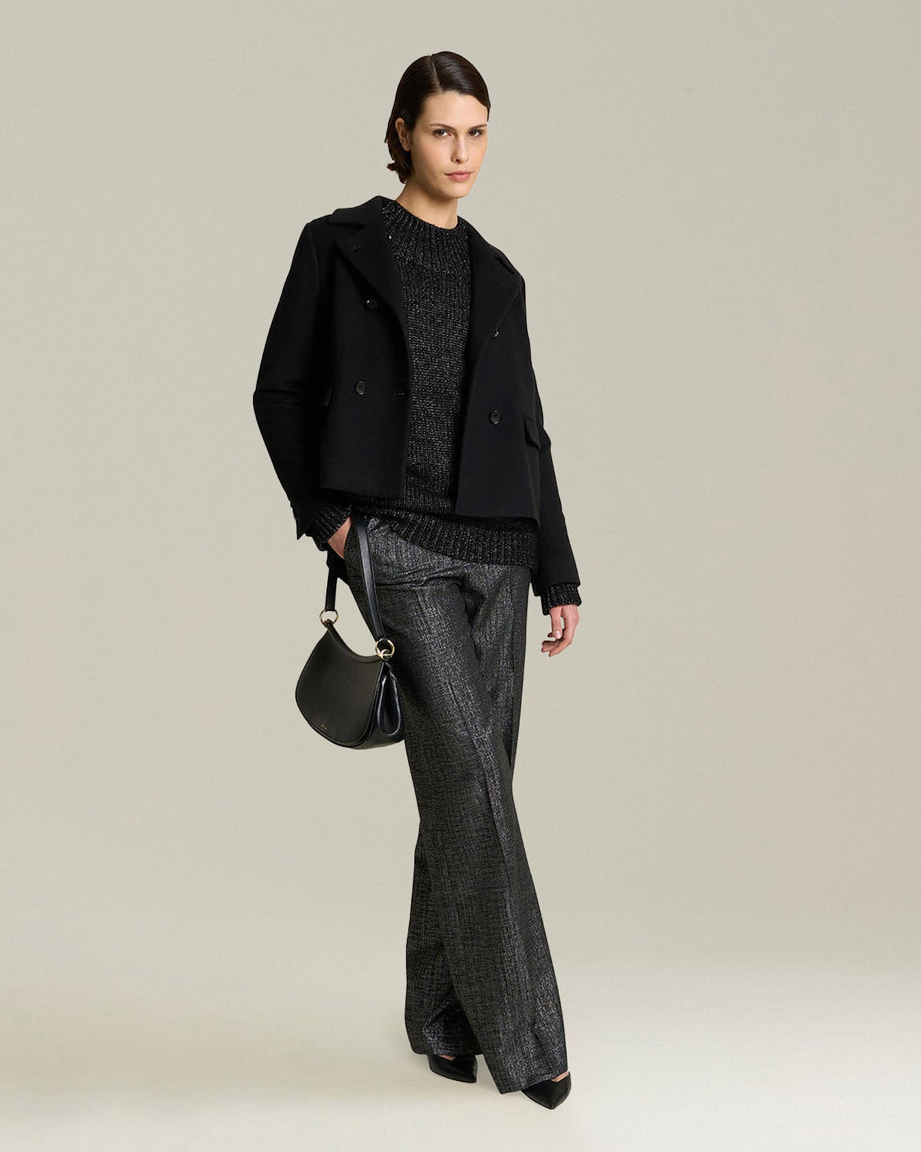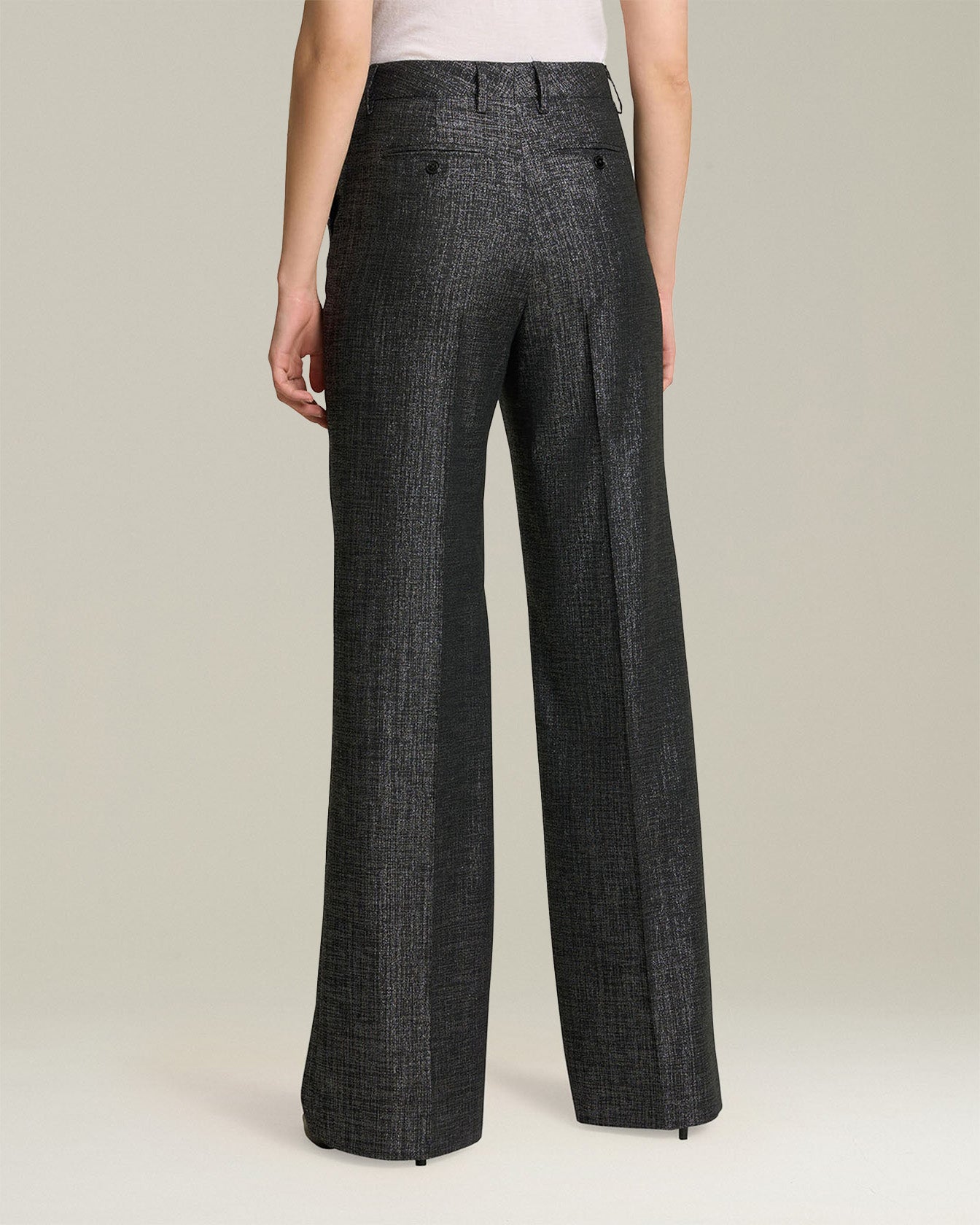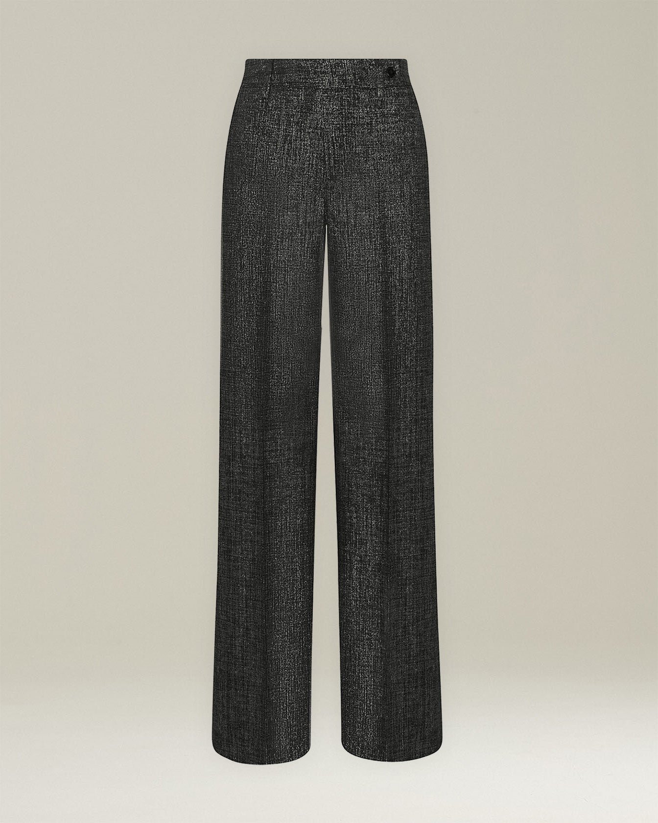 Trousers defined by a straight, soft cut with a light, flowing design, made from a textured wool blend. The craftsmanship is complemented by the classic details of the buttoning, the pockets set into the seams and the back welt pockets. The softness and leg length give it a relaxed feminine touch. These Kiton trousers can be worn on any occasion, whether styled as part of a sporty look or paired with a jacket and a heeled shoe for a casual-chic ensemble.