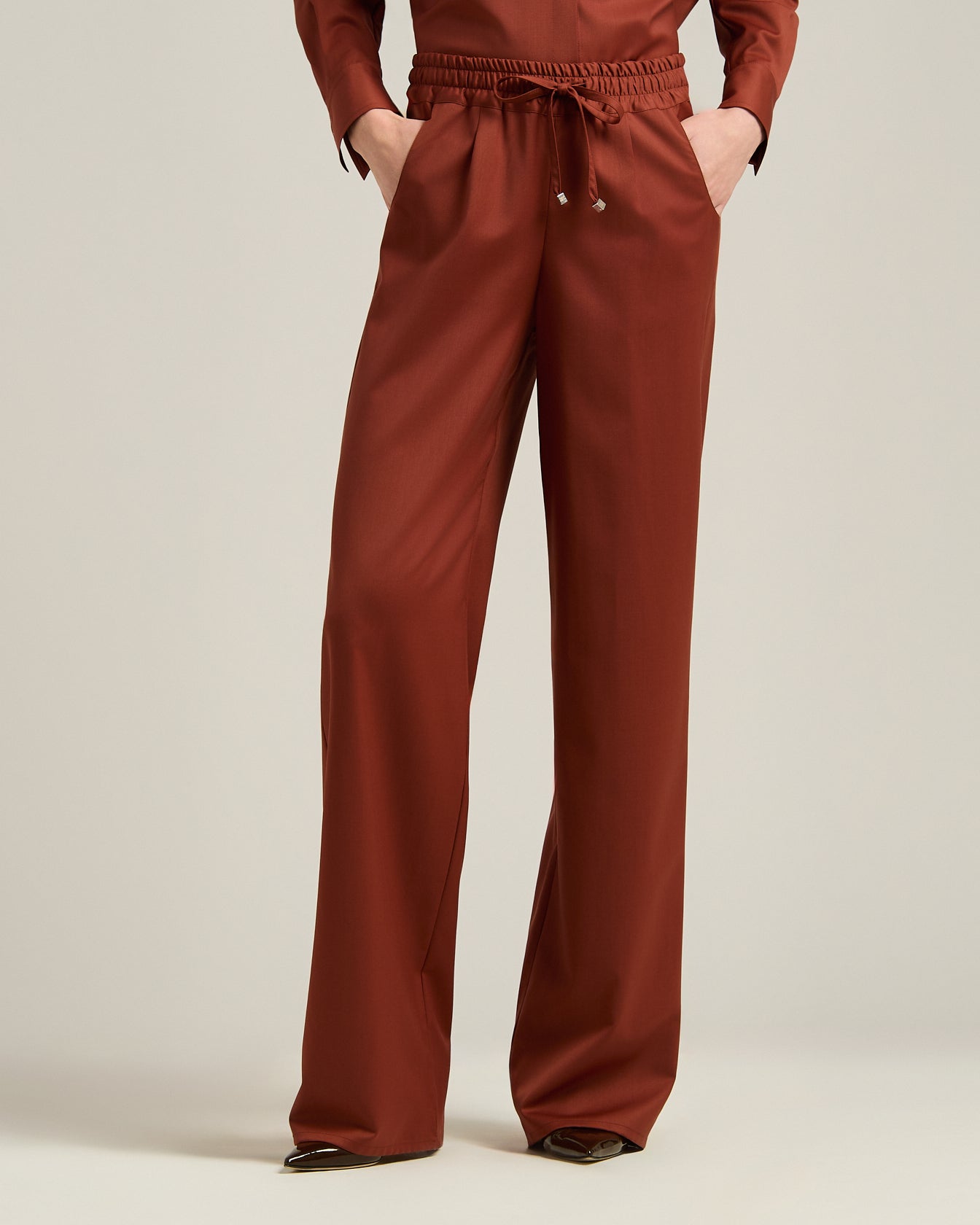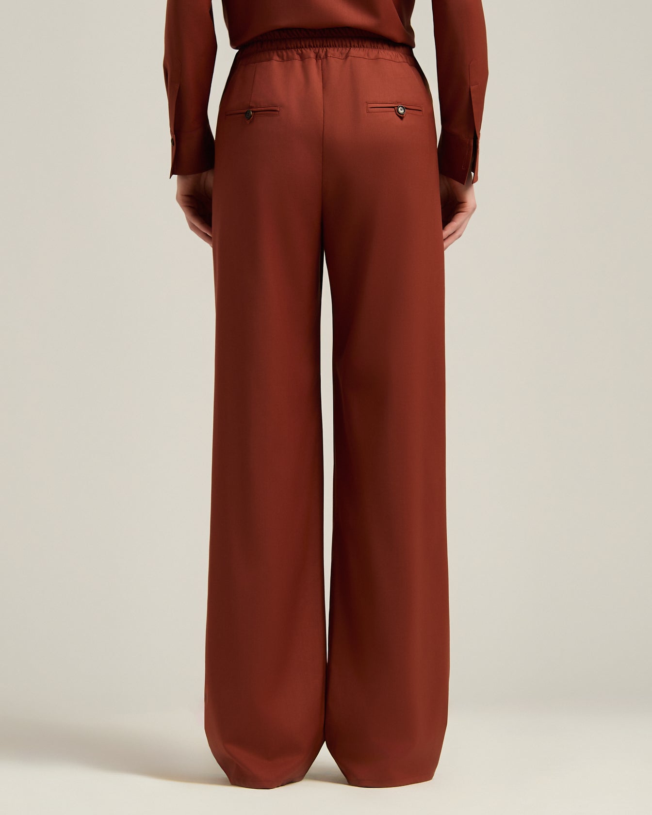 TERRACOTTA WOOL PALAZZO TROUSERS WITH ELASTIC WAIST