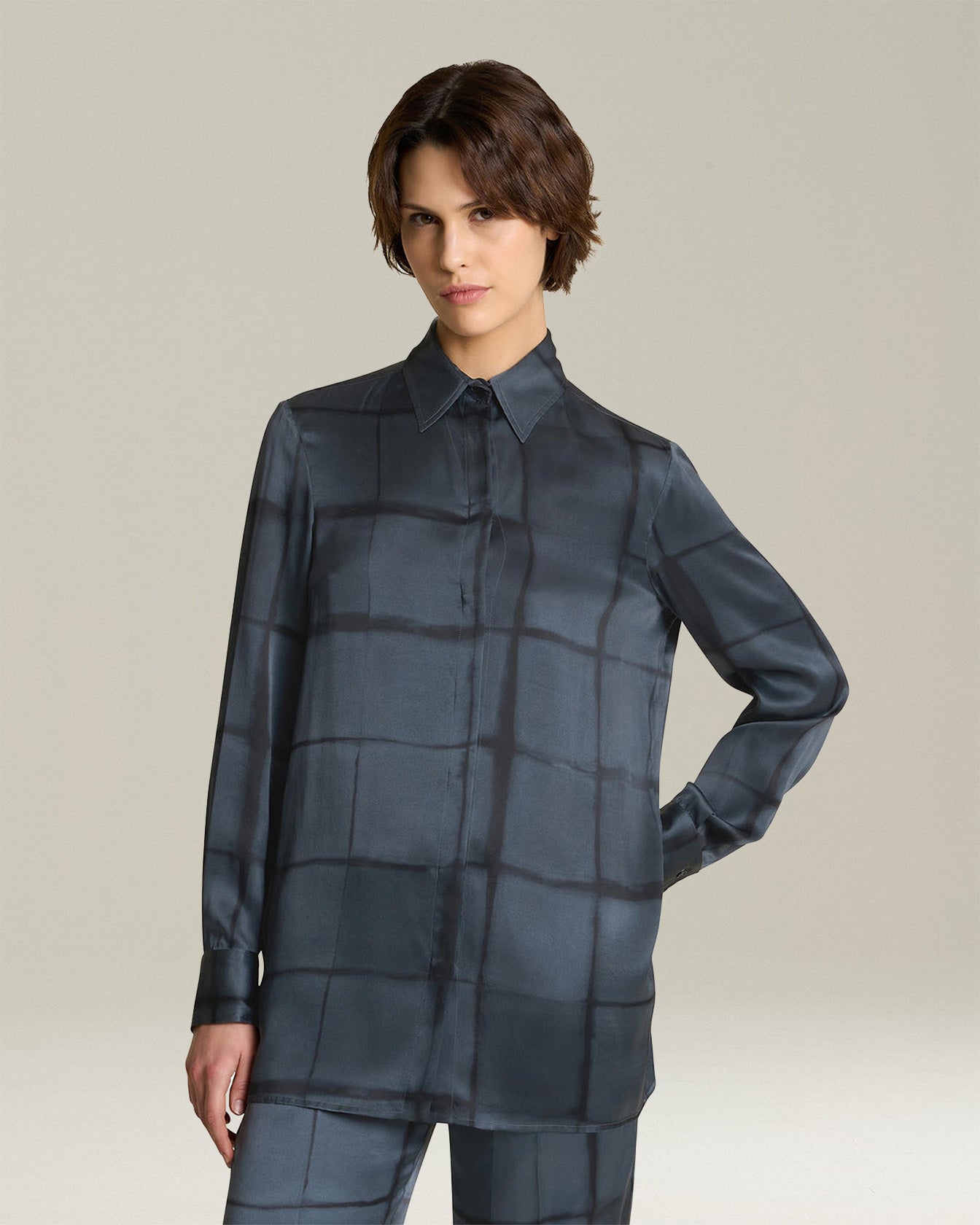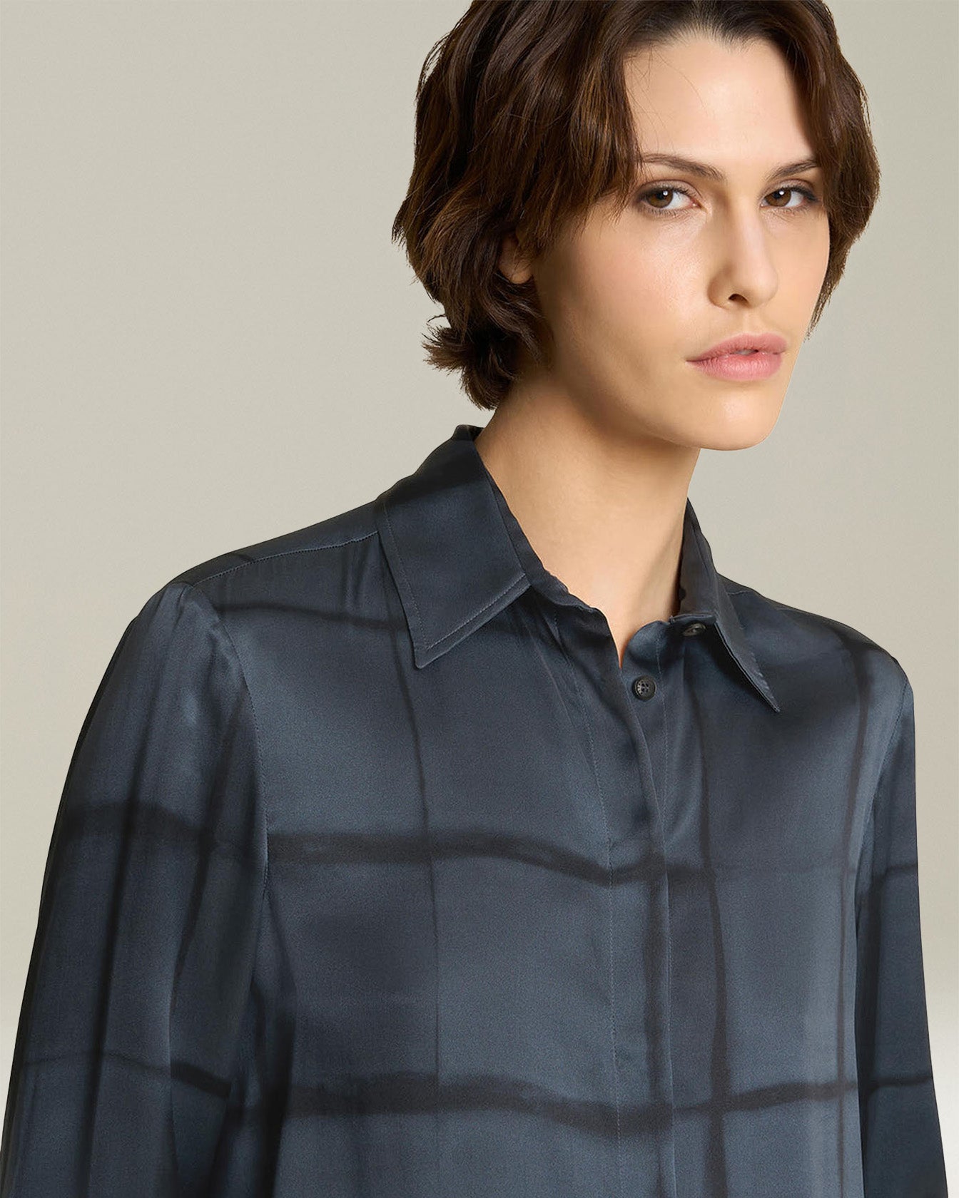 Decorated with iconic prints, this shirt showcases the sophistication and fluidity of silk. Its classic lines are reinvented thanks to the length and the slightly iridescent effect of the fine fabric. The sophisticated elegance of the garment is accentuated by the concealed buttoning, making it perfect for formal events. With 22 steps completed by hand in our Neapolitan atelier, each Kiton shirt reflects unparalleled craftsmanship.