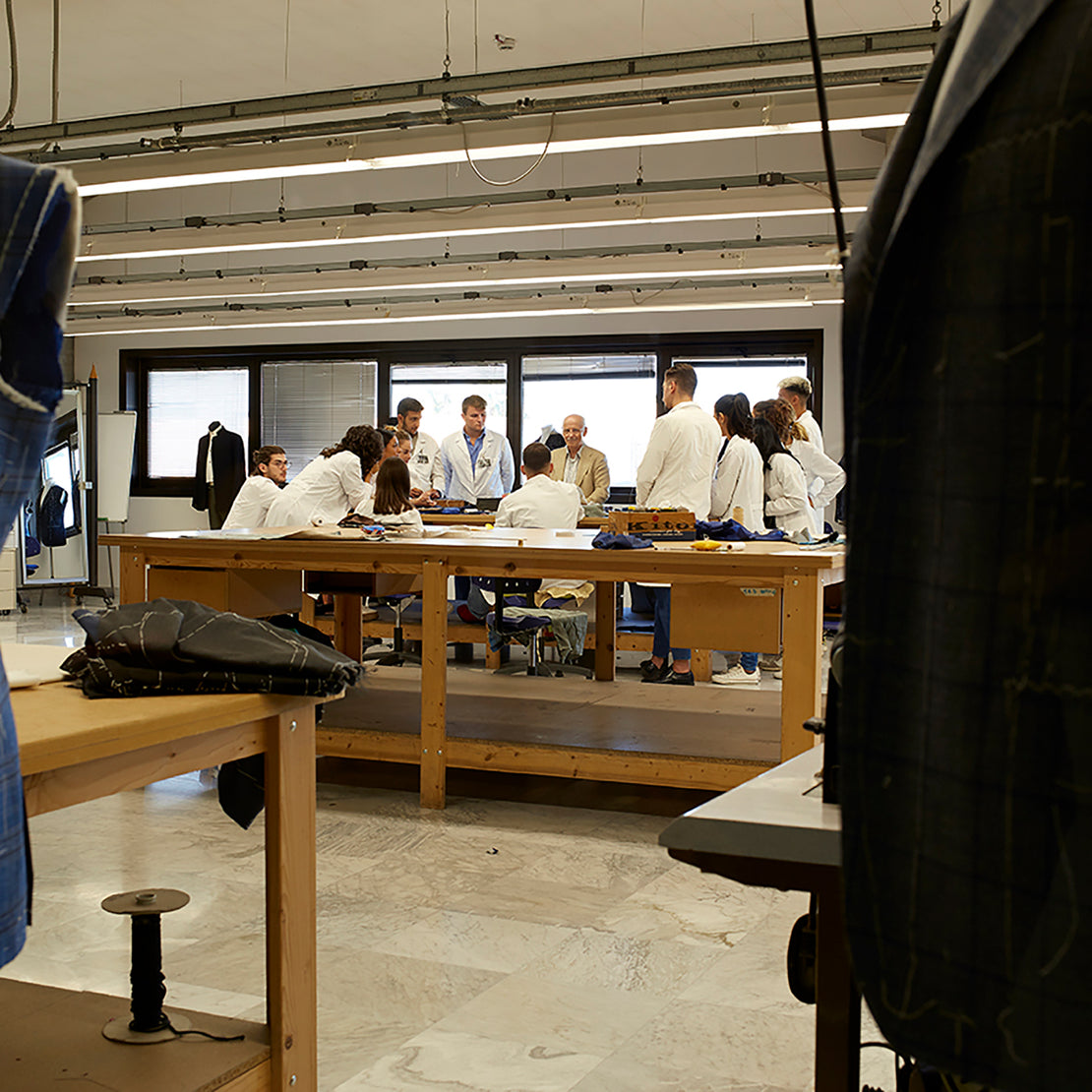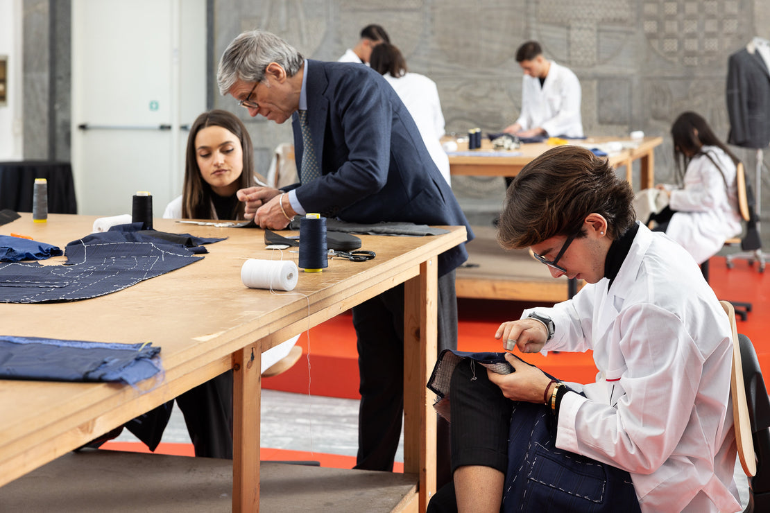 The great goal of Kiton’s founder was achieved with the creation of a three-year program taught by the company’s master tailors to prepare young people aged 16 to 21 for the professional world. The first two years of the course are dedicated to the complete jacket creation cycle. In the third year, students specialize in a specific production phase to gain a comprehensive understanding of the Kiton method.