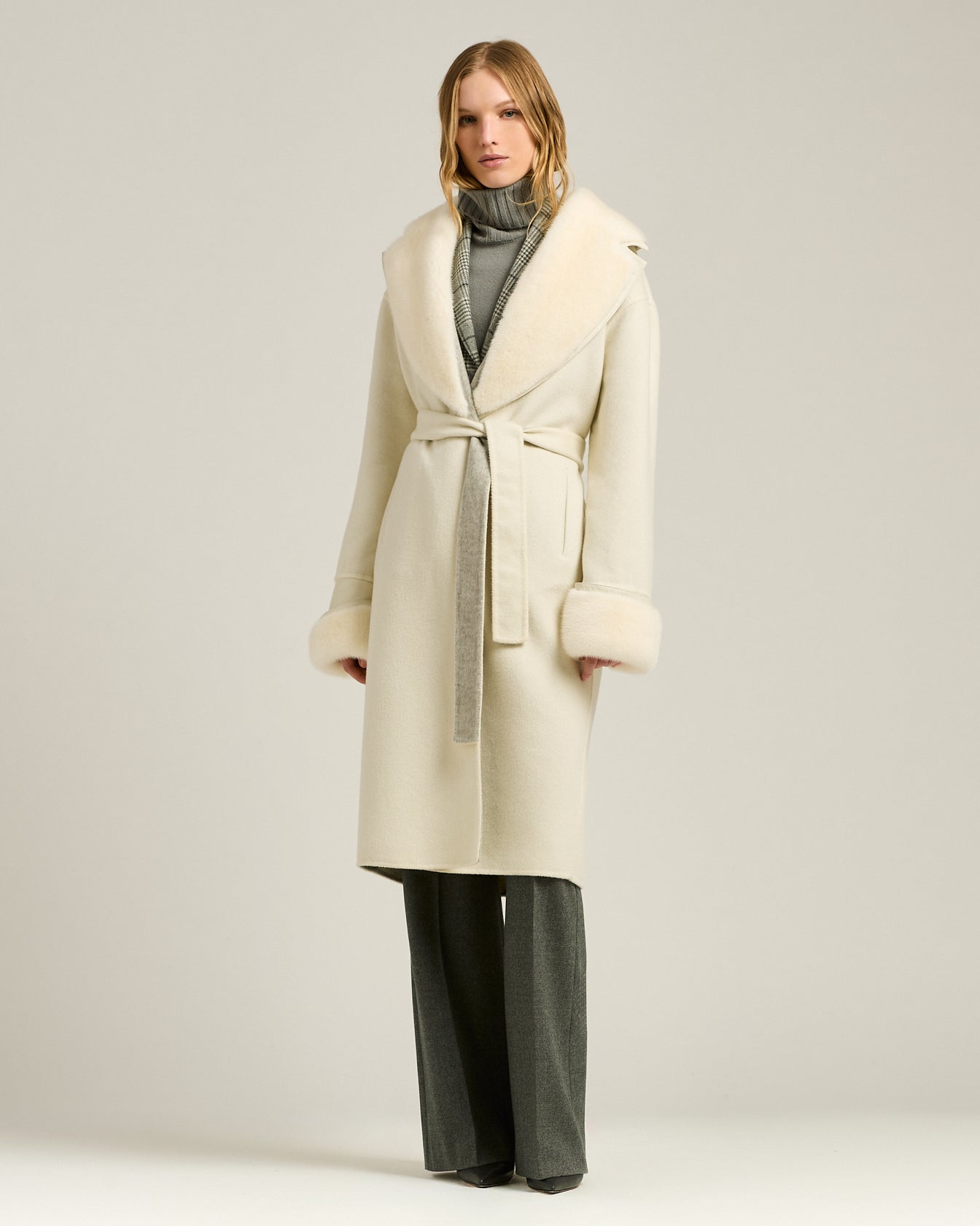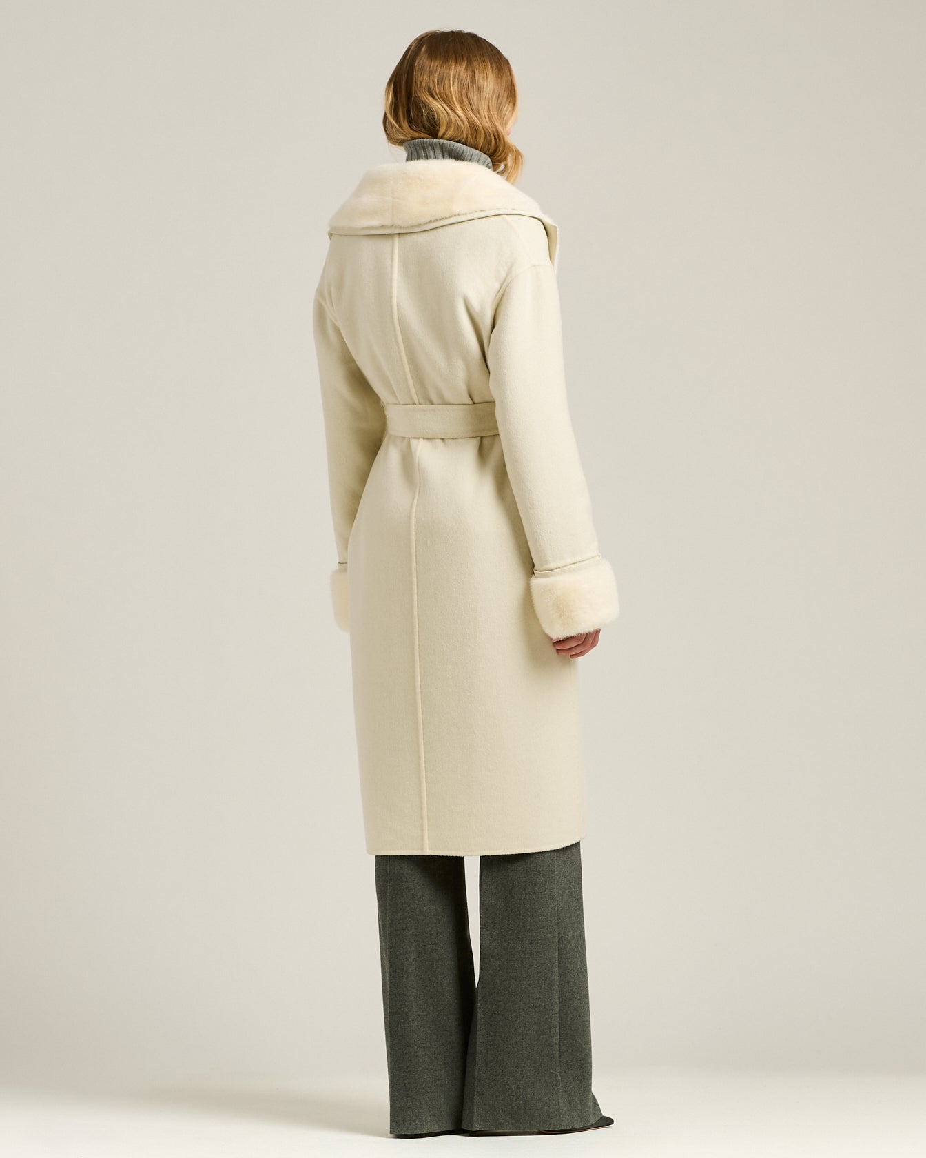 WHITE CASHMERE COAT WITH FUR DETAILS