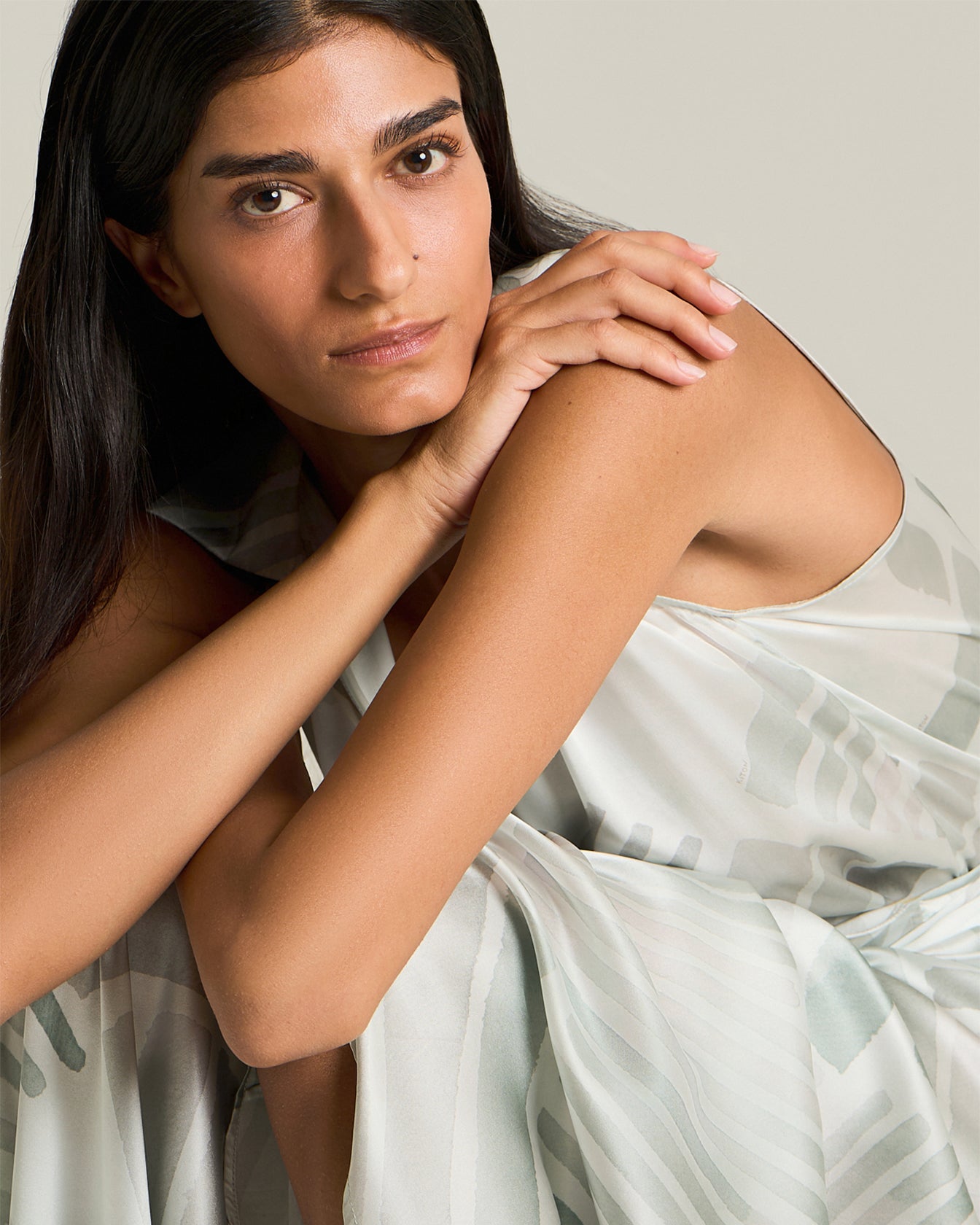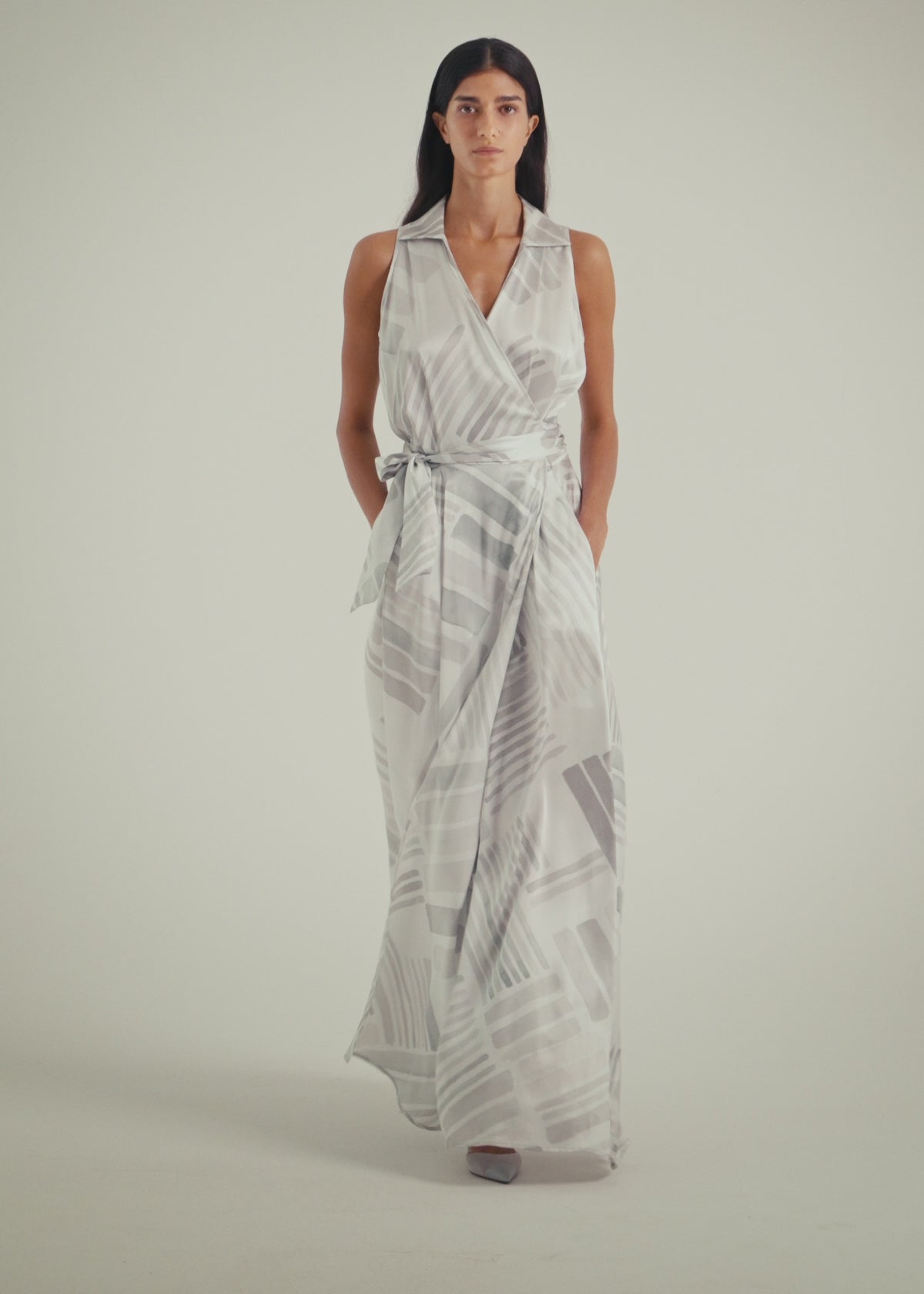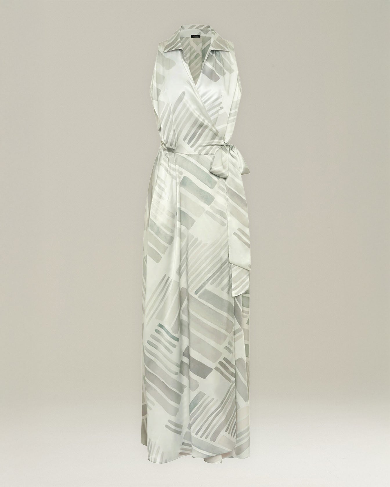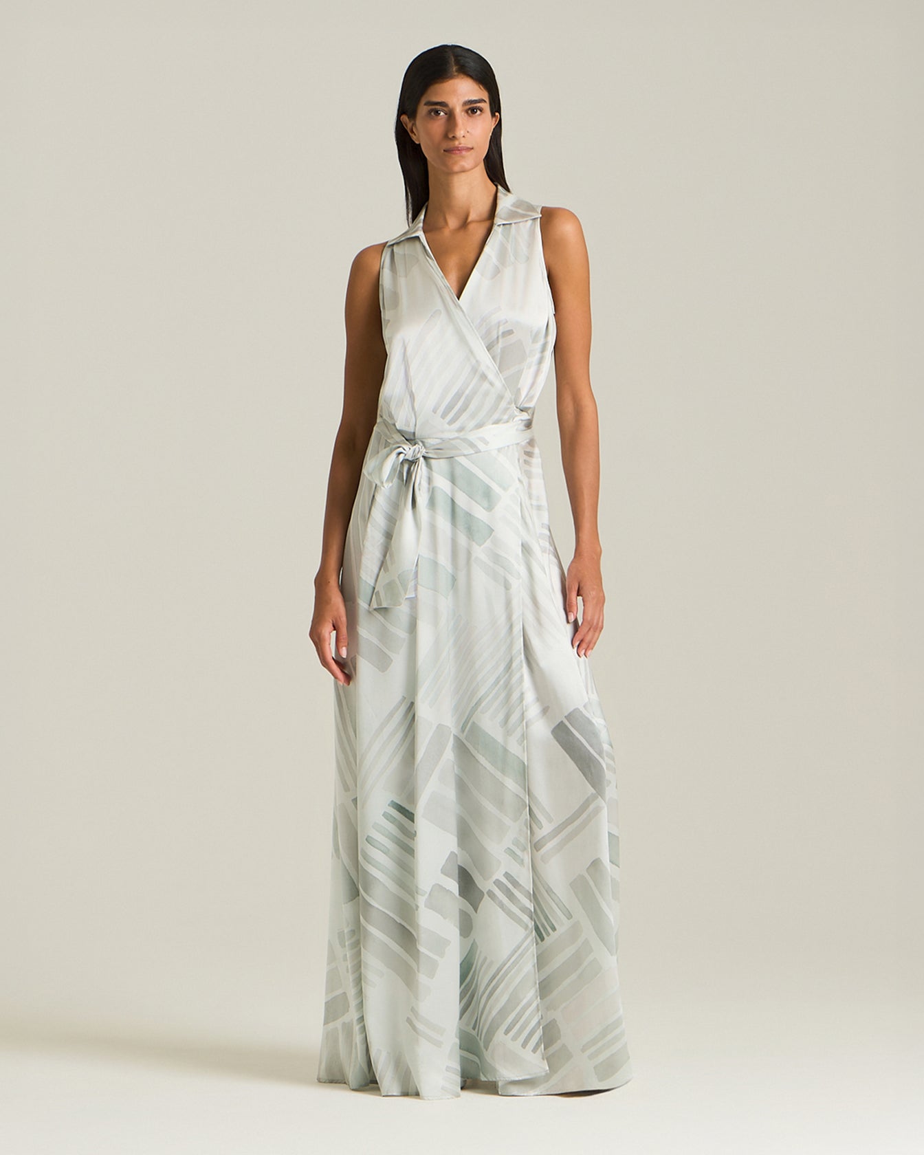 Crafted from soft silk printed with the new Ethnic Brush pattern, this wrap dress has an enchanting off-the-shoulder silhouette that hugs the body like a second skin. The fluid fit is accentuated by a side tie at the waist, enhancing the feminine form with grace and style. A bold vent at the skirt allows for freedom of movement, so you can dance with elegance at any time of the day.
