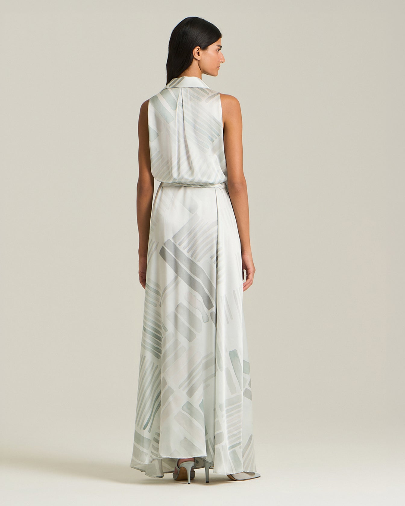 LONG SILK DRESS WITH ETHNIC BRUSH PATTERN