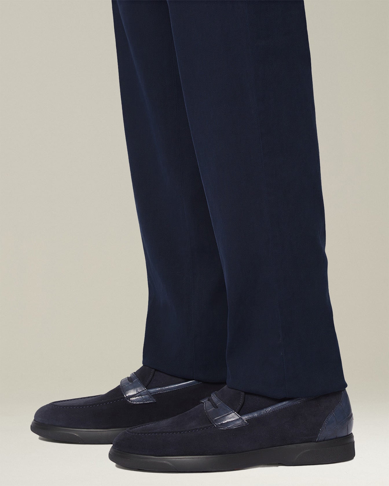 With the same craftsmanship that characterises every Kiton product, shoes, handbags and small leather goods are handcrafted by expert tailors in the workshops in Arzano. Here, tasselled calfskin, deerskin and hand-painted crocodile skin are combined with fine fabrics, resulting in true masterpieces crafted from the finest raw materials available. Shoe lines are designed to reflect the deconstruction typical of Kiton jackets, creating a seamless connection that harmoniously links the outerwear to the shoes. This philosophy perfectly captures the essence of the brand: style and flexibility, comfort and elegance, all combined with an obsessive attention to quality and detail.