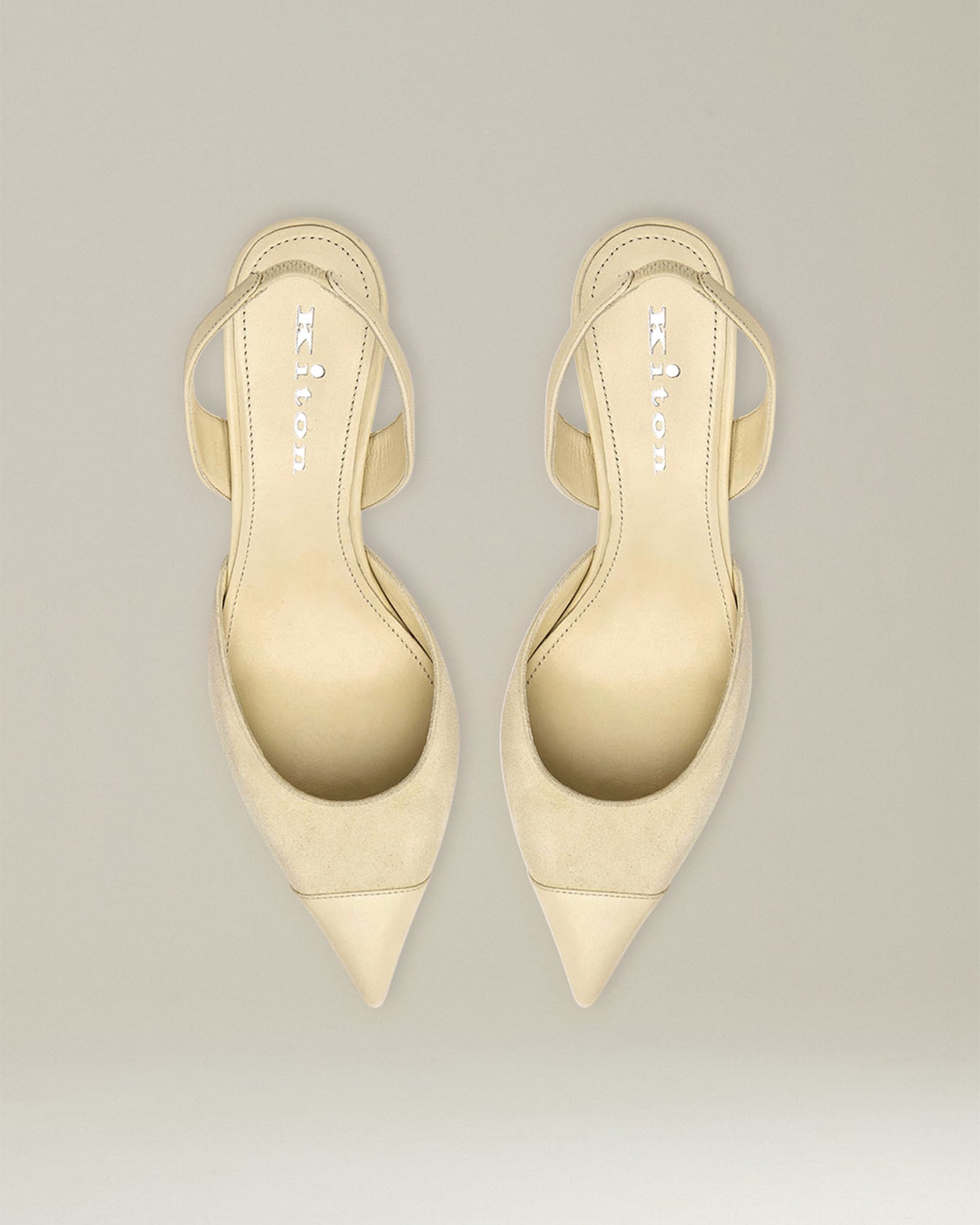 Kiton’s slingback pumps are an authentic icon of the women’s wardrobe, a celebration of elegance that combines sophistication and versatility. Crafted from the finest suede and embellished with leather detailing, their sleek, sophisticated silhouette embodies a simple appeal that never goes out of style. The 7cm heel provides momentum and grace, while the slingback design offers unique comfort and ensures a stable, secure fit.