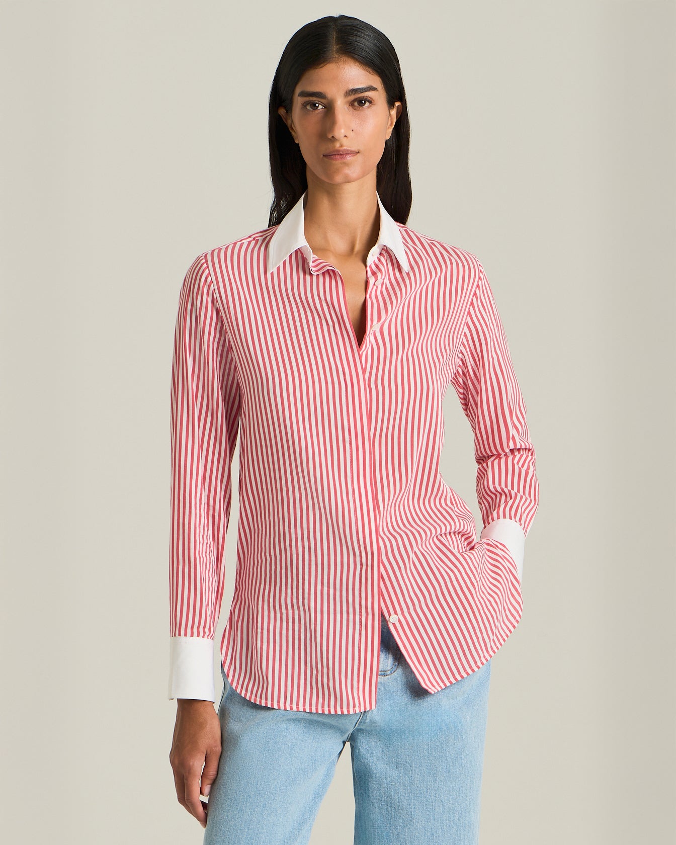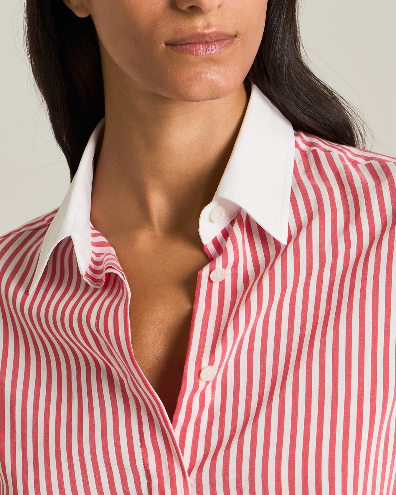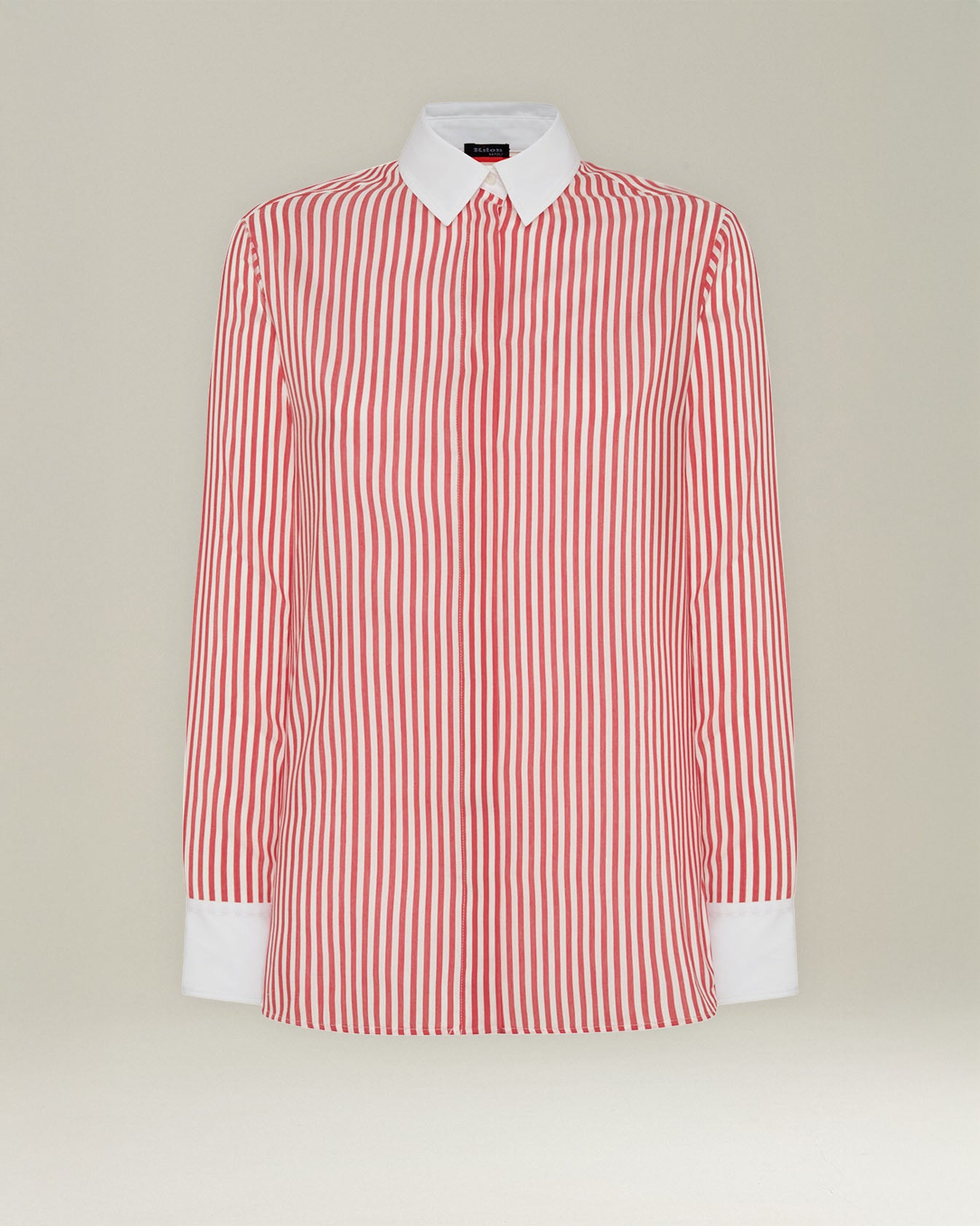 This Kiton shirt explores timeless elegance through a symphony of stripes and an unmistakable sartorial touch, striking the perfect balance between ease and sophistication. Vertical lines in warm hues alternate masterfully, capturing light in a play of contrasts that celebrates movement and femininity. Crafted from an exclusive blend of cotton and silk, it envelops the body with an imperceptible lightness for a feeling of unparalleled luxury and comfort. The contrasting white collar and understated cuffs add a touch of sophisticated rigour, while the concealed button placket maintains the purity of the design.