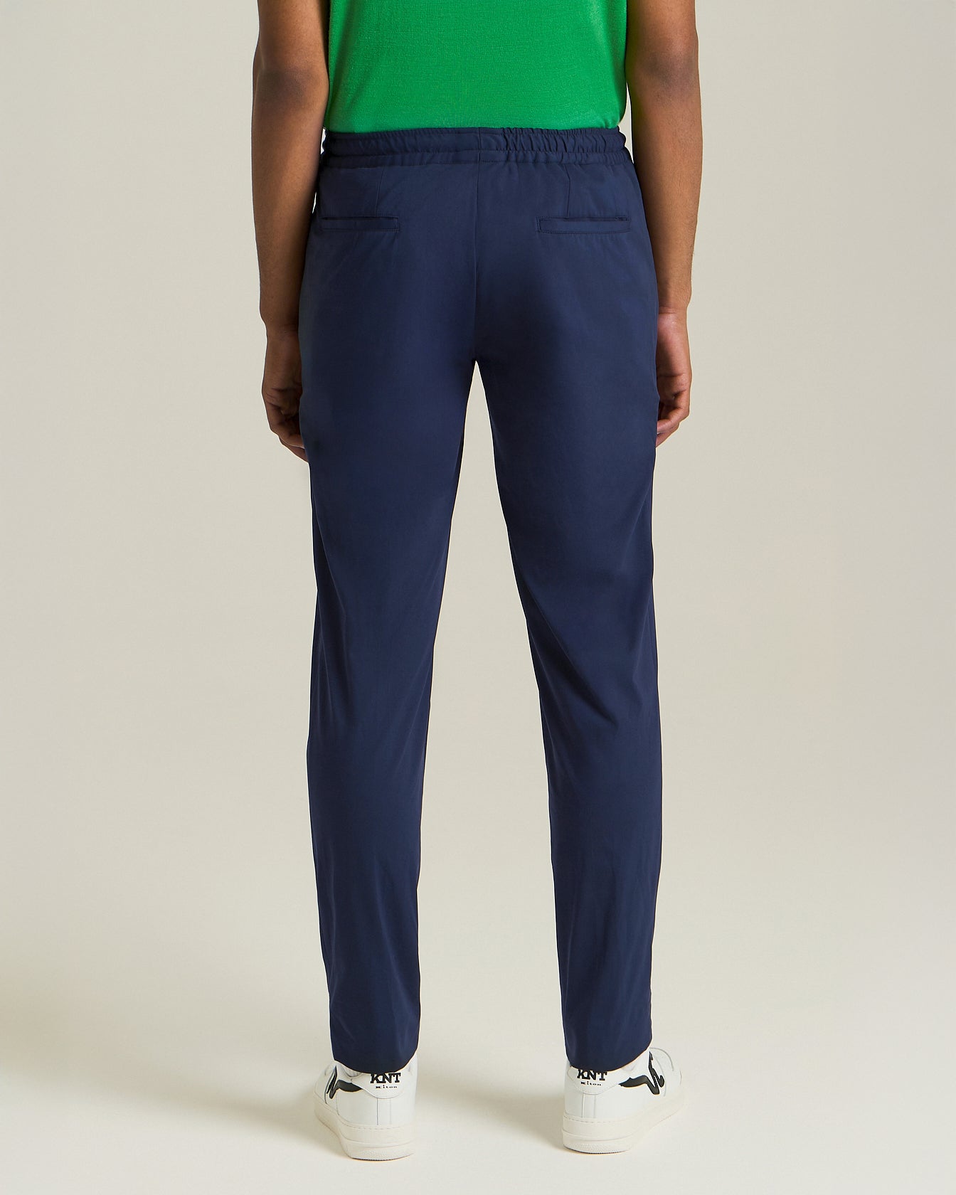 Impeccable cuts, inherited from a long family tradition, lighten the shape of the KNT suit in an unstructured mood that mixes classic elegance with contemporary aesthetics. Crafted from technical stretch fabric, the ‘Young’ jacket features sophisticated details such as notch lapels, two buttons and patch pockets, perfectly meeting the needs of those looking for dynamism and comfort without sacrificing style. The ‘Sasha’ trousers complete the suit with their relaxed, practical fit. With slant and welt pockets, they feature an adjustable elasticated waistband with drawstring and KNT laser-cut aglet, a distinctive detail that adds a modern touch. Interpreting contemporary languages with an urban, dynamic vision, this suit is perfect for those seeking sophisticated style and everyday comfort.